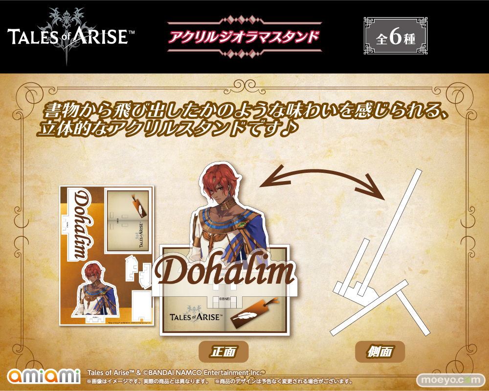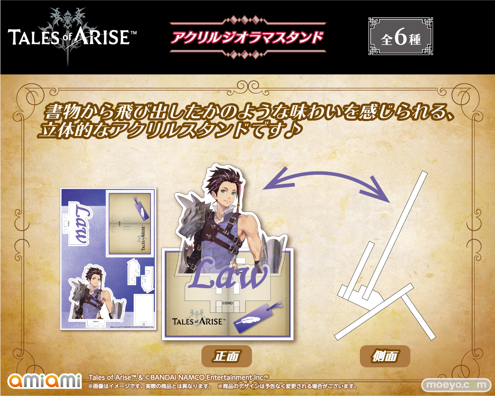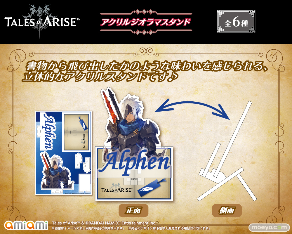 『テイルズ オブ アライズ』OPアニメ映像の場面写を用いたアクリルキーホルダー、普段遣いしやすい、シンプルなデザインが特徴のマグカップ、書物からキャラクターが飛び出したかのような雰囲気を味わえる、立体的なアクリルスタンド。全9種の新商品が登場しました。【あみあみ】