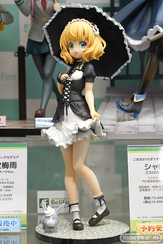 2021年11月に発売予定のベルファイン新作美少女フィギュア「ご注文はうさぎですか?BLOOM シャロ ゴスロリVer.」の、おそらく製品版に近い形のPVC製サンプルが、アキバのボークスホビー天国2で展示!『ゴスロリならではの黒を基調とした衣装で、左手でスカートをたくし上げる彼女は、制服姿とは一味違った大人っぽさを感じさせます。編み込みの衣装、フリルのスカート、傘の造形はもちろん、塗装にも細部までこだわりました。』というもので、原型制作は本体が梓零(ガンドール)さん。傘は小唄さん。彩色製作はアンドウケンジさん。その展示の様子を画像レビューとしてお伝えします!
