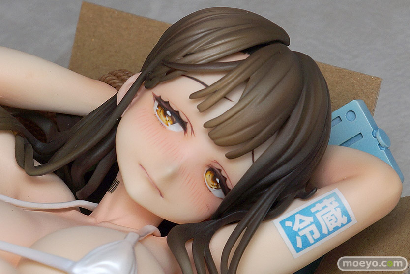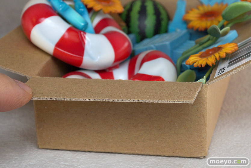 あみあみによる新規アダルトブランドの「メルヘンパンチ」第一弾となる新作エロフィギュア「梱包少女 葉月七海 」が予約受付開始!『夏の魅力満載のバカンススタイル。 はじける曲線美とセクシーな水着の絶妙なバランスは見るものを魅了します。 頬を赤らめた表情がとてもキュート! 背景の小物も忠実に再現をして大ボリューム。』という、AV化などメディアミックスでも話題となった「咲良ゆき」さんによる人気シリーズ「梱包少女」からの立体化で、ボリューム感のある台座(梱包箱)や差し替えパーツなどこだわりの仕様となっています!原型制作はぶりんが らんばさん。彩色は住田和宏さん。もちろんビキニ上下はキャストオフ可能でしっかりMOLO!その様子も含め最新の彩色サンプルを見せて頂けましたので、画像レビューとしてお伝えします!(アダルトフィギュアとなります!18歳未満の方は閲覧をお控えください。)