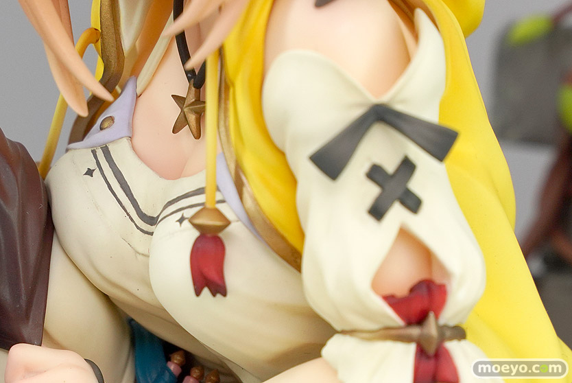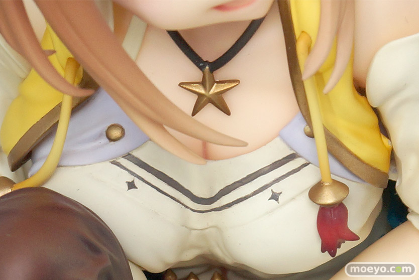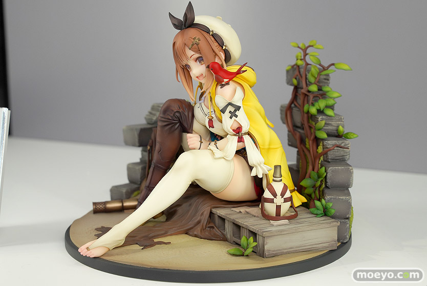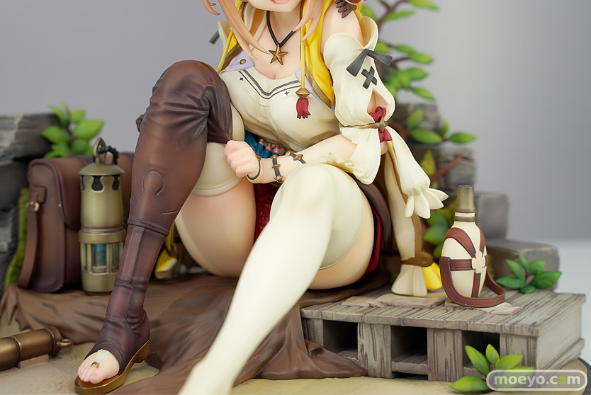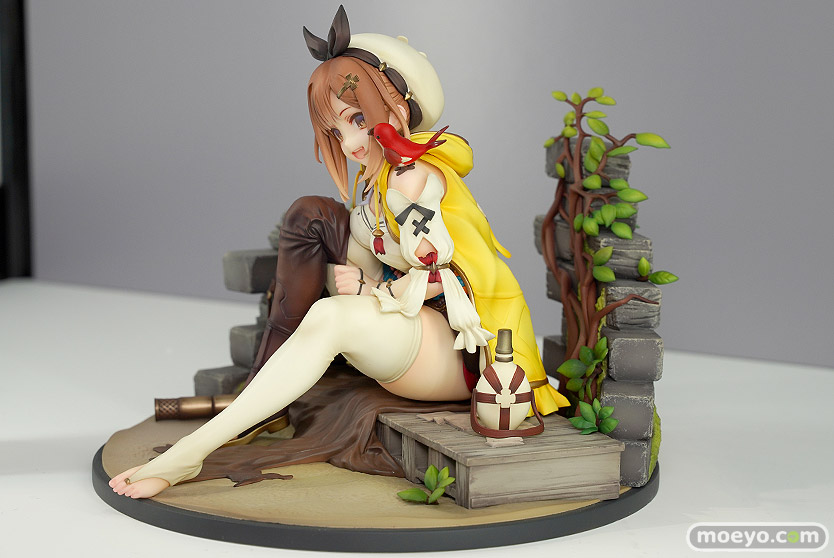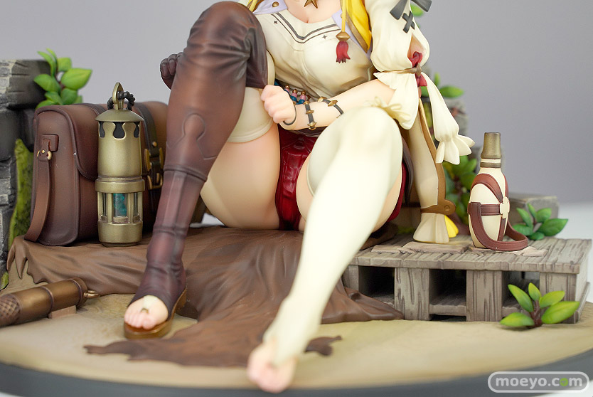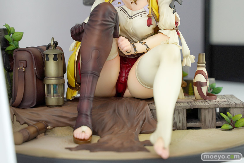 マックスファクトリーの新作美少女フィギュア「ライザのアトリエ ~常闇の女王と秘密の隠れ家~ ライザリン・シュタウト」の彩色サンプルが、「ワンホビ34」の会場で展示!『ゲームのプレミアムBOXイラストをモチーフに、肩に止まった小鳥と戯れながら冒険への身支度を整えるライザを完全再現。 背景には鞄やランタン、水筒といった小物や石壁、絡まる蔦を配したヴィネット風に仕立てました。 』というもので、健康的な太ももや少し食い込んだホットパンツ、膝で押された右胸の柔らかな曲線など、フェチっぽい見どころが満載の一品です!原型制作はあきもふさん。彩色はお茶イヌハナ太郎さん。その展示の様子を画像レビューとしてお伝えします!