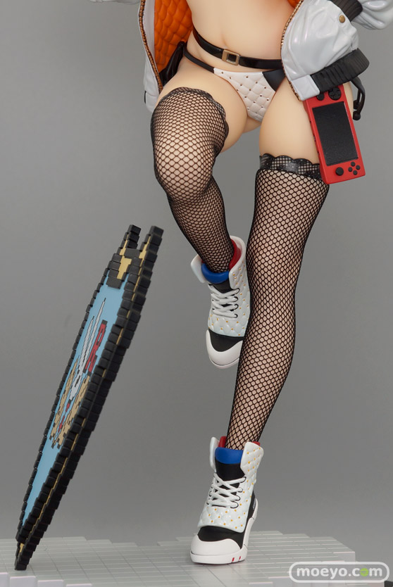 肉感ゆたかなボディライン、リアルタイツに包まれた脚線美や、カジュアルながらも素材感を重視し造り込んだ衣装など、余すところなくその魅力を再現いたしました。ゲーム機や盾パーツなどの小物類も付属。