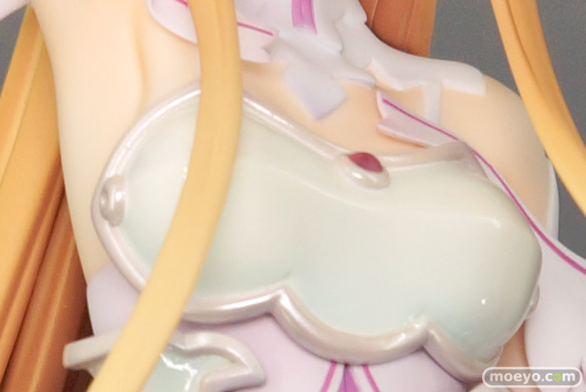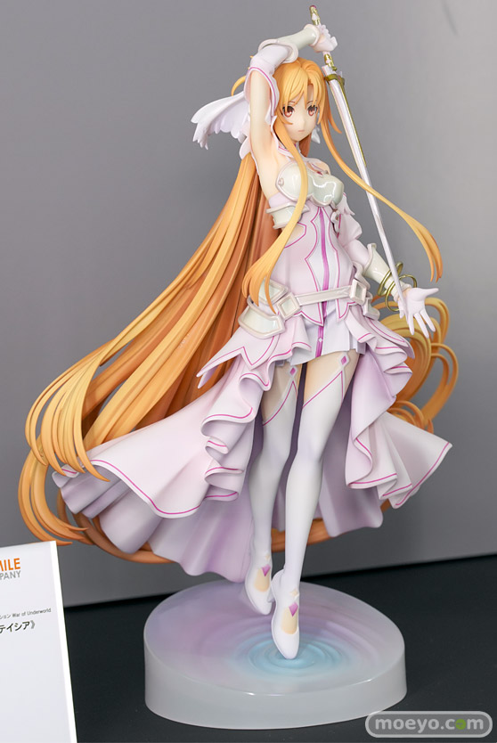 グッドスマイルカンパニーの新作美少女フィギュア「ソードアート・オンライン アスナ《創世神ステイシア》」が予約受付開始!『繊細かつ大胆なロングヘアやふわりと広がるドレスなど精緻に再現された造形に是非ご注目ください。ヘッドドレスや鎧部分には上品なパール感のある彩色を施しています。台座には、降り立つ水面をイメージした波紋の造形・グラデーション塗装を加えました。女神のごときアスナを是非お手元にお迎えください。』という、公式イラストを元に立体化されたもので、原型制作はにゃばーさん。彩色はZ4さん。「ワンホビ34」の会場で展示されていた彩色サンプルの様子を、画像レビューとしてお伝えします!