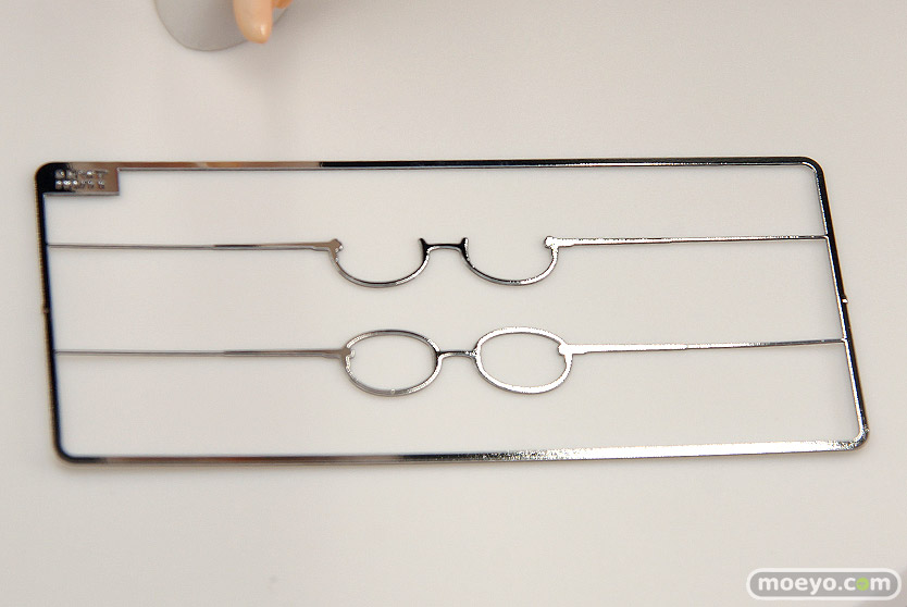 メガネパーツはフルフレーム、ハーフフレームの2種が付属。画像ではハーフフレームのほうを装着させています。装着位置が結構硬く、ゆがみやすいハーフフレームは装着難易度はかなり高めだったため、フルフレームのほうが装着はしやすいかもしれません。