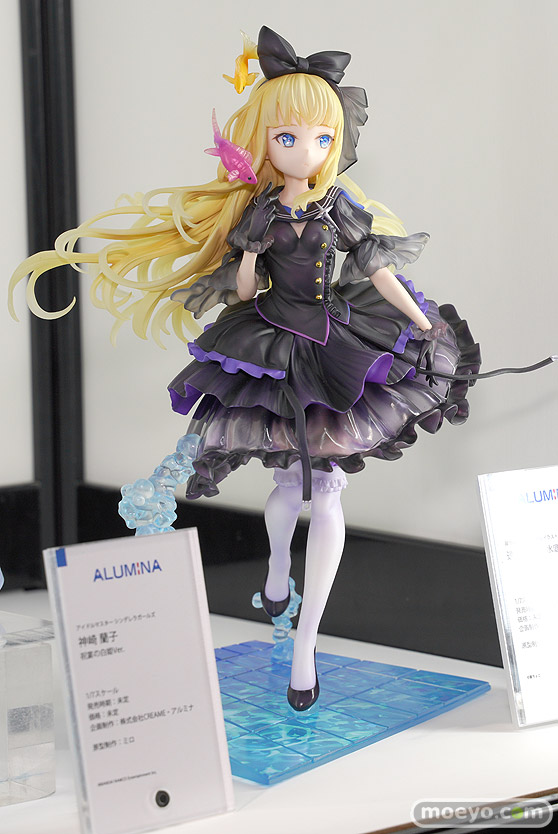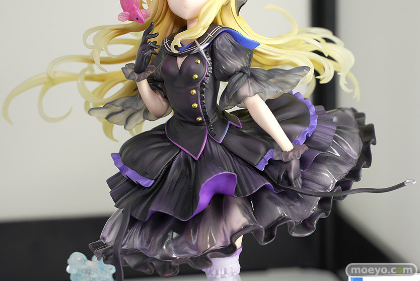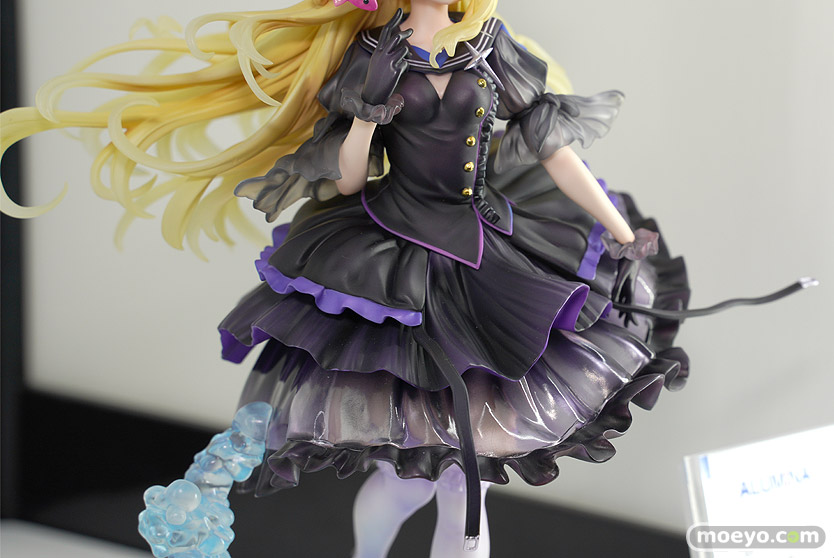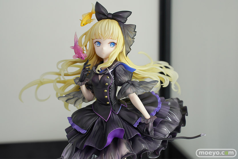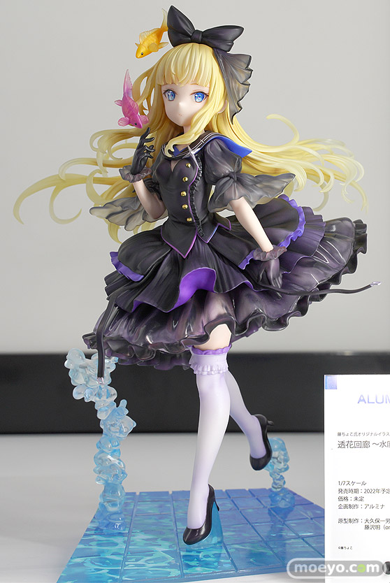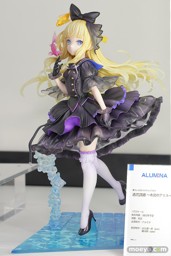 今月2022年1月発売予定のアルミナ新作美少女フィギュア「透花回廊~水底のアリス~」の彩色サンプルが「ワンホビ34」の会場で展示!『人気イラストレーター藤ちょこ氏の「透花回廊~水底のアリス~」がフィギュアとなって登場です!儚げで愛らしい表情に、舞い踊るプラチナブロンドの髪とのコントラストが美しい黒を基調としたドレス、そこにほどこされた細かな装飾も忠実に再現いたしました。専用台座には、水中を感じさせる泡や差し込む光の反射など、イラストの雰囲気をより感じて頂ける様に作り込んでおります。』というもので、原型制作は大久保一男(one) さん・藤沢明(one)さん。彩色はけんさん。その最新の彩色サンプルを見せて頂けましたので、画像レビューとしてお伝えします!