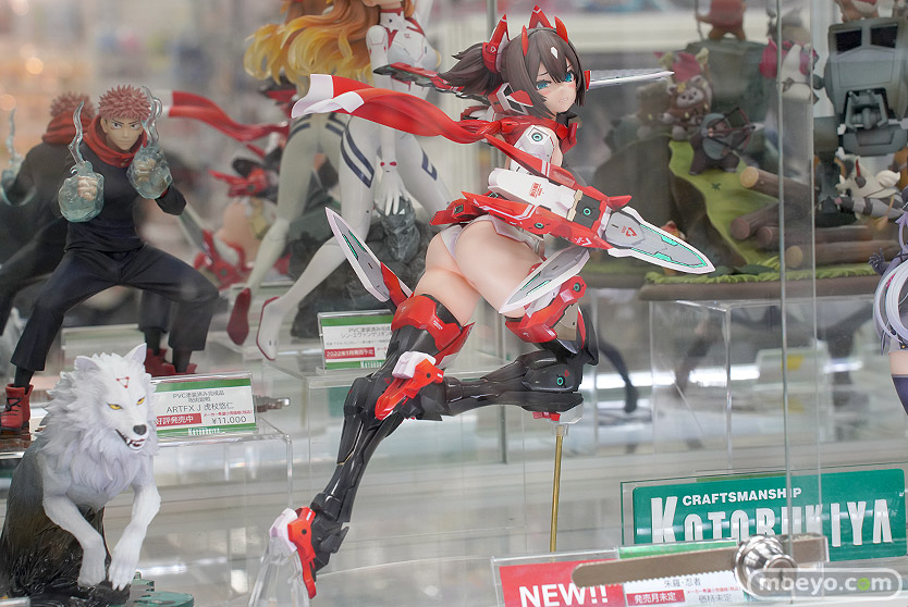 Nidy-2D-さんデザインのメガミデバイス第5弾を2/1スケールでスタチュー化!予約開始前のコトブキヤ新作美少女フィギュア「朱羅・忍者」彩色サンプルがアキバで展示!予約開始前のコトブキヤの新作美少女フィギュア「朱羅・忍者」があみあみ 秋葉原ラジオ会館店で展示!ことぶkいやの美少女プラモシリーズ「メガミデバイス」の第5弾として登場したNidy-2D-さんデザインの「朱羅・忍者」を固定ポーズ&2/1(全高約280mmくらい)のビッグスケールでフィギュア化したものです!確認したところ、プラモでは稼働の都合上どうしても再現しきれないお尻やVゾーン周りを、ここぞとばかりに気合の入った造形で再現しておりました!その展示の様子をお尻画像多めの画像レビューとしてお伝えします!