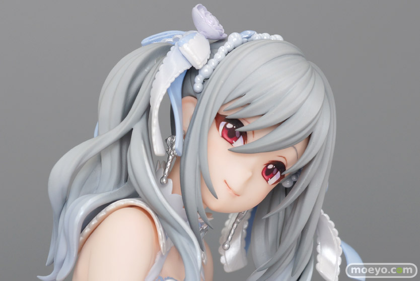 アルミナの新作美少女フィギュア「アイドルマスター シンデレラガールズ 神崎蘭子 祝宴の白姫ver.」が予約受付開始!『『アイドルマスター シンデレラガールズ』より、「神崎蘭子」が“祝宴の白姫”衣装でフィギュアとなって登場です!優しく微笑む蘭子の表情は、幼さの中にも大人っぽさが感じられる魅力的な仕上がりとなりました。豪華ながらも繊細な衣装には、所々にクリアパーツやパール塗装を使用し、細部まで拘る事で衣装や彼女の華やかさを出来る限り再現いたしました!』というもので、原型制作はミロさん。彩色は五日市歩さん。その他(企画制作等)は株式会社CREAMEさん。その最新の彩色サンプルを見せて頂けましたので画像レビューとしてお伝えします!