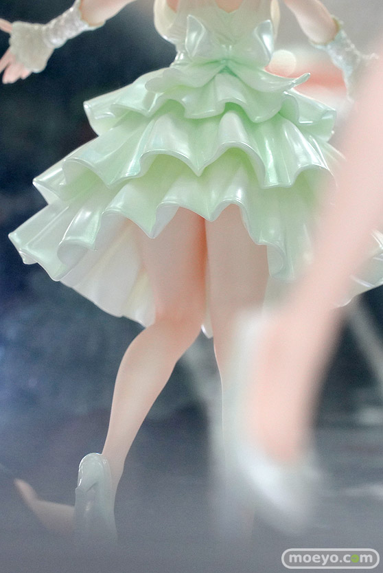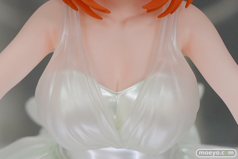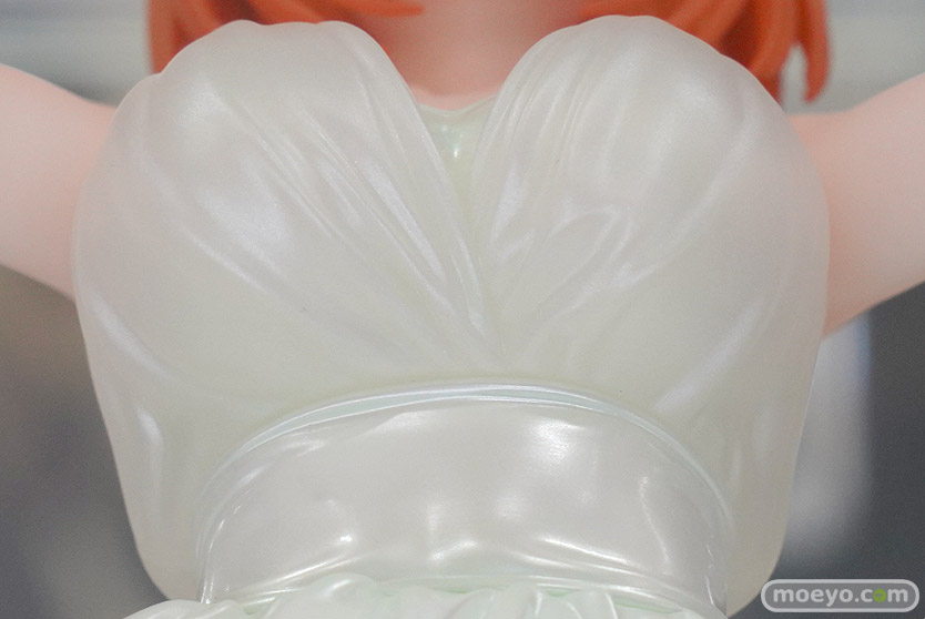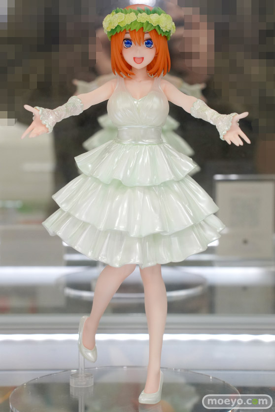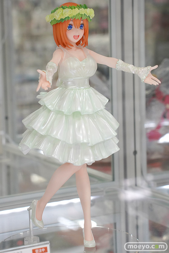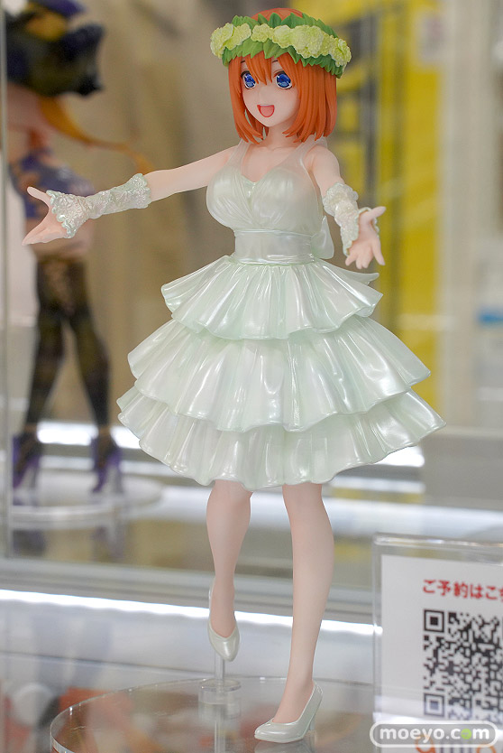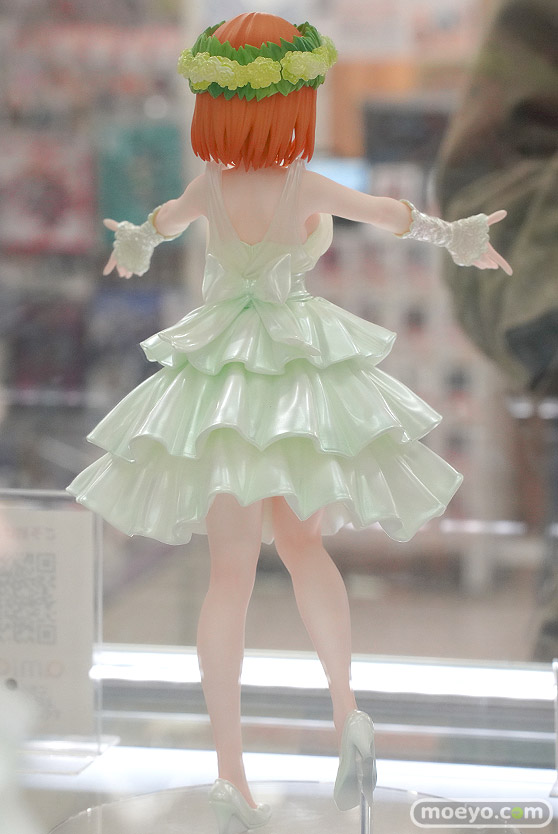 あみあみ×AMAKUNIの新作美少女フィギュア「五等分の花嫁∬ 中野四葉 ウェディングVer.」があみあみ 秋葉原ラジオ会館店で展示!『元気いっぱいにこちらに微笑む姿をイメージして造形。ウェディングドレスらしい生地感を追求しつつも、四葉のキーカラーである緑のグラデーションを用いてキャラクターイメージを追求。手の刺繍や花冠といった細かい箇所に至るまでこだわり、四葉のウェディング姿を再現いたしました。』というもので、原型制作は鈴木葉月さん。彩色はあきもとはじめさん。その展示の様子を画像レビューとしてお伝えします!