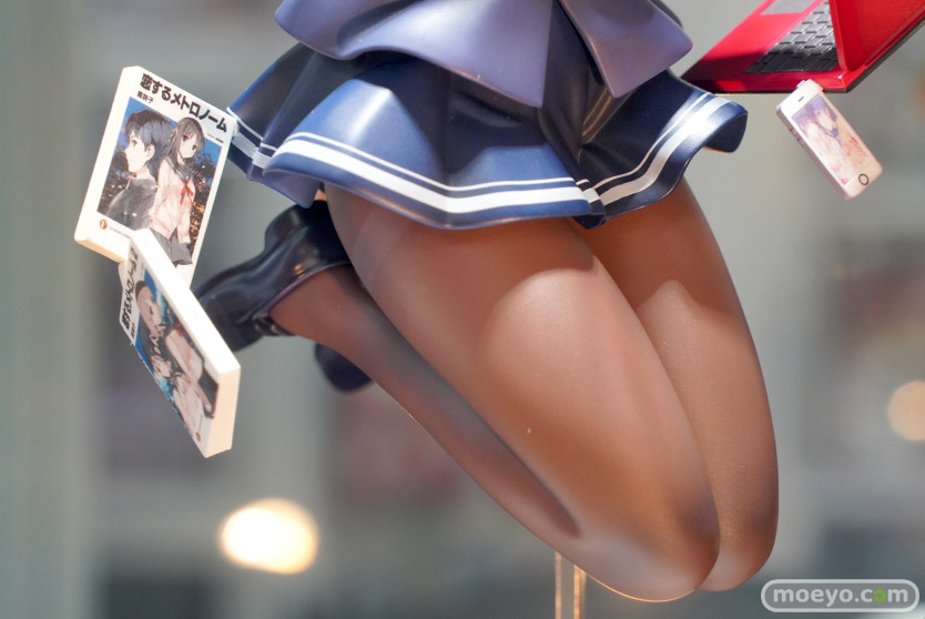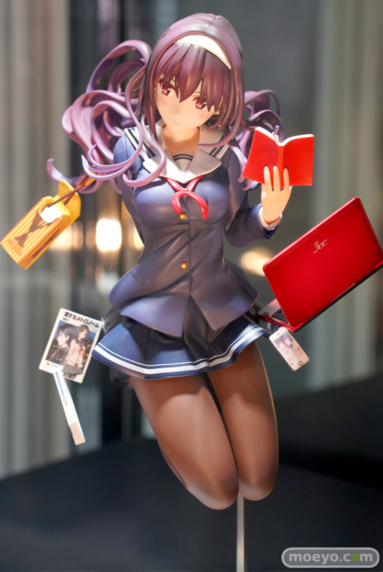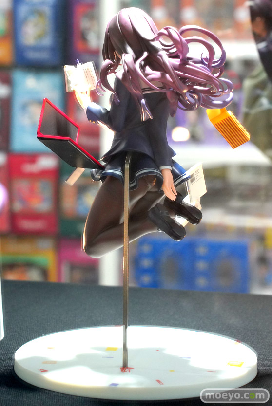 今月発売されたマックスファクトリーの新作美少女フィギュア「冴えない彼女の育てかた♭ 霞ヶ丘詩羽」の、おそらく製品版同等のPVCサンプルが、あみあみ 秋葉原ラジオ会館店で展示!『アニメ一期DVD四巻のビジュアルを元に、深崎暮人氏ならではの繊細なタッチと魅力的な塗りのイメージを造形と彩色に落とし込みました。躍動感のあるポーズや詩羽を象徴する小物が空中を舞う大胆なレイアウトも見どころです。』というもので、原型制作は間崎祐介さん・マックスファクトリーさん。彩色はあきもとはじめさん。その展示の様子を画像レビューとしてお伝えします!
