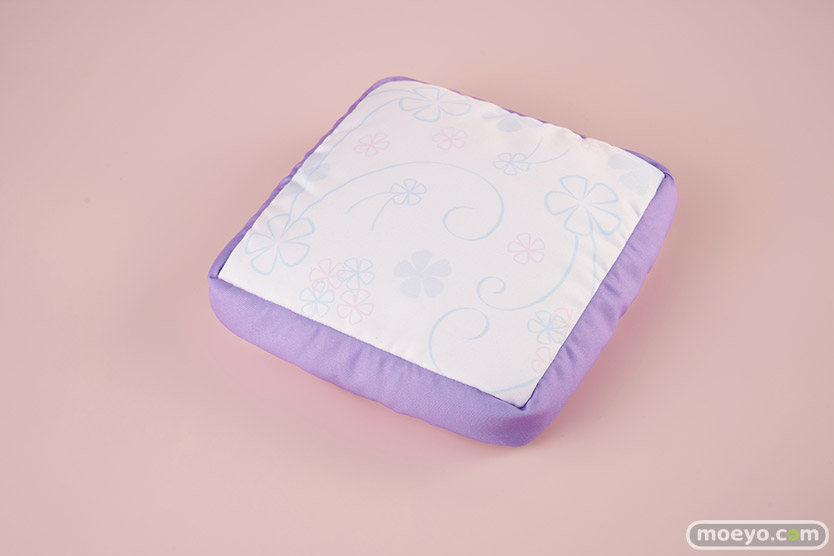商品に標準で付属するクッションは、レムの髪飾りをモチーフにしたオリジナル柄のナノビーズクッションです。台座としてディスプレイに使用できます(サイズ約150×150×45mm)。