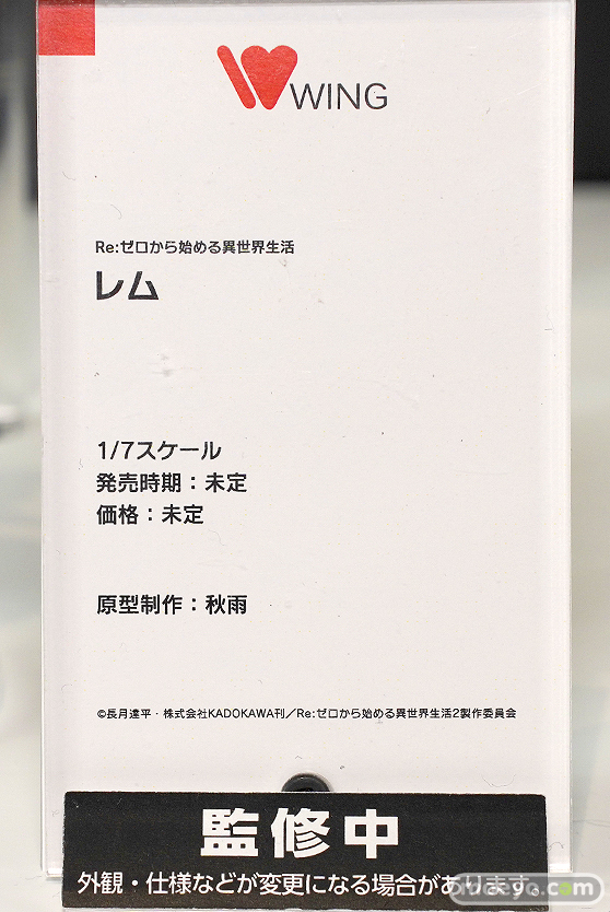 【ワンホビ35】ウイング新作美少女フィギュア「Re:ゼロから始める異世界生活 レム」監修中原型が展示!ウイングの新作美少女フィギュア「Re:ゼロから始める異世界生活 レム」の監修中原型が「ワンホビ35」の会場で展示!おなじみのメイド服姿でスカートのすそを少し持ち上げた可愛らしいしぐさの立ちポーズ姿での立体化で、原型制作は秋雨さん。その展示の様子を画像レビューとしてお伝えします!