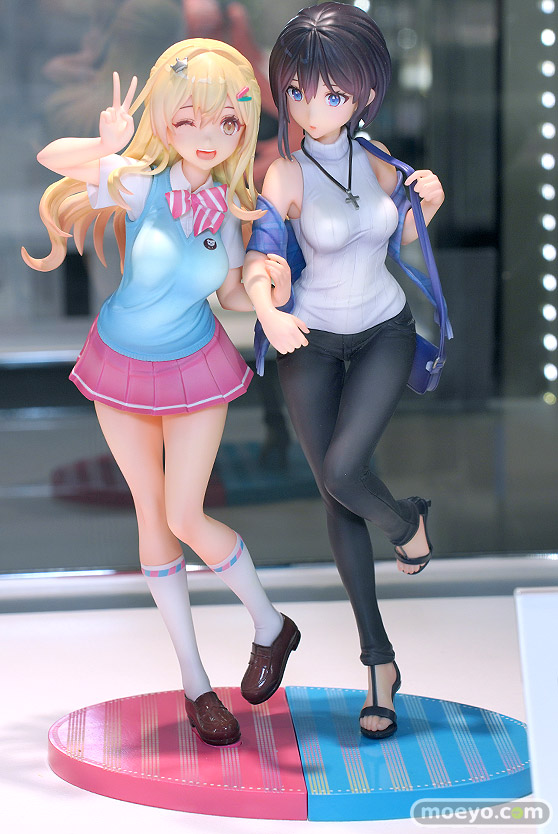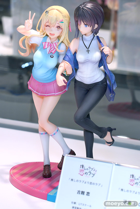 APEXの新作美少女フィギュア「推しのラブより恋のラブ 古館恋&速星あくる」が予約受付開始!『APEX社企画製作の下、イラストレーターDSマイル氏をキャラクターデザインに起用した王道百合コメディAVG『推しのラブより恋のラブ』より、ソシャゲのガチャに大金を投入しつつも推しは絶対引けない不運なオタクOL「速星あくる」と、そんなあくるの前に突然現れたガチャ運最強ギャル「古館 恋」のカップル二人が腕を組みながら一緒にフィギュア化デビュー!』というもので、原型制作はKibaさん, Claireさん。原型監修はNd_dogさん。塗装は山灰さん、TORAMIさん。「あみあみホビーキャンプ代替展示」の会場で展示されていた彩色サンプルの様子を、画像レビューとしてお伝えします!