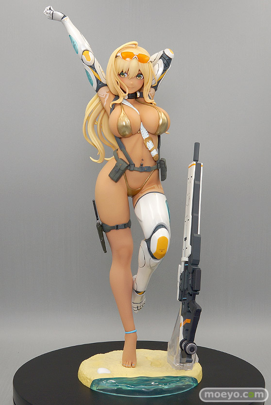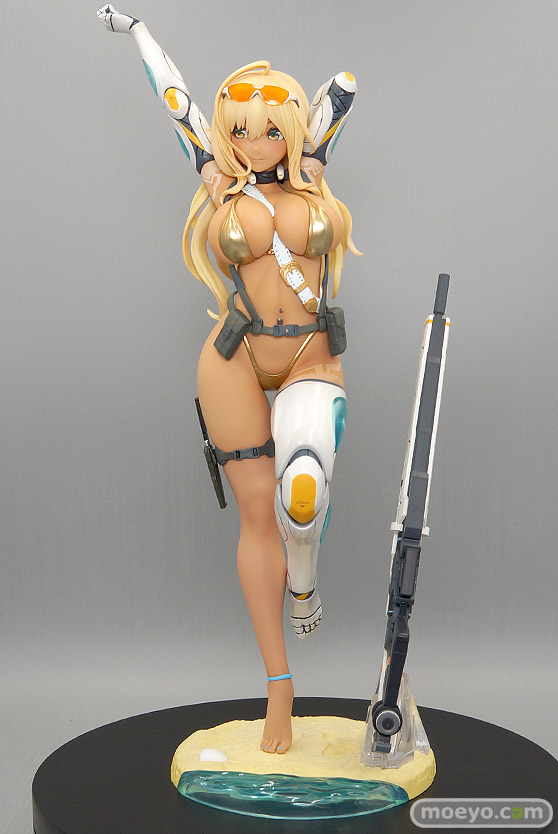 【アダルトフィギュア】スカイチューブ「ギャルスナイパー illustration by Nidy-2D- DX ver.」新作エロフィギュア製品版レビュースカイチューブの新作エロフィギュア「ギャルスナイパー illustration by Nidy-2D- DX ver.」が発売!『抜群のプロポーションとキュートな笑顔でのびやかに海辺でくつろぐギャルスナイパー。そのメカニカルなサイバネアームとレッグ、小麦色の日焼け肌にゴールドのビキニの魅惑の組み合わせの妙を、美麗な原画のままに再現いたしました。』というもので、原型制作はHIROさん。別表情パーツと衣装の喰い込み表現と自然のままのボディ表現を楽しめるボディパーツ2種も付属しています。「自然のままのボディ」のほうはもちろんMOLO状態!その様子も含め、製品版の様子を画像レビューとしてお伝えします!(アダルトフィギュアとなります!18歳未満の方は閲覧をお控えください。)