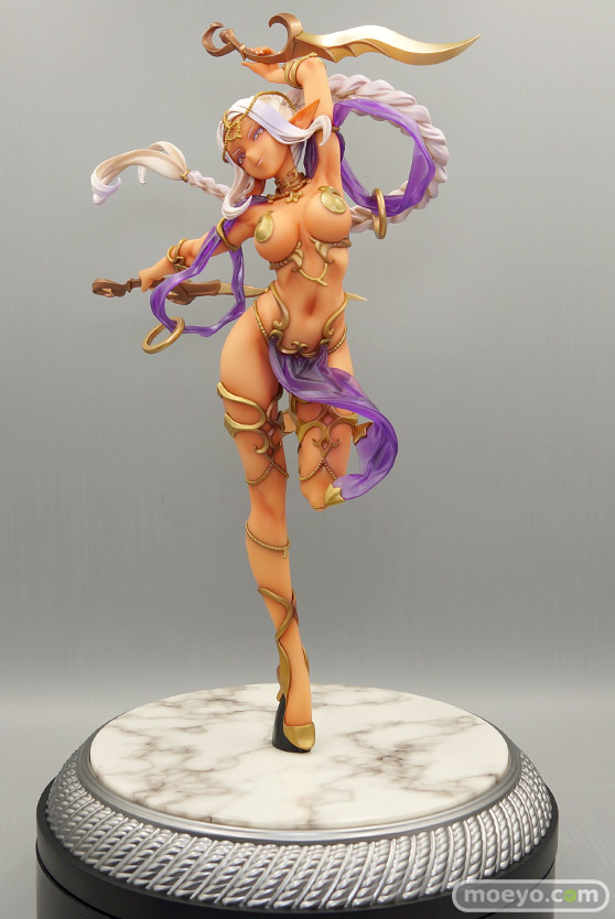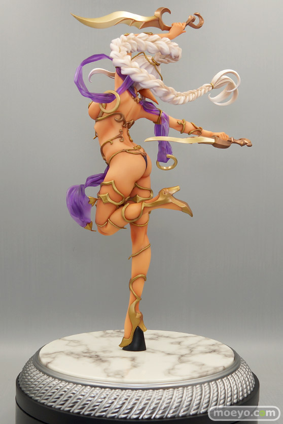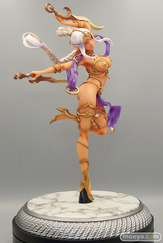 ひらめく薄いヴェールの向こうに見え隠れする褐色の肌色、大胆なアーチを描く編み込まれた銀髪など、ダークエルフならではの魅力をぎっしり詰め込みました。