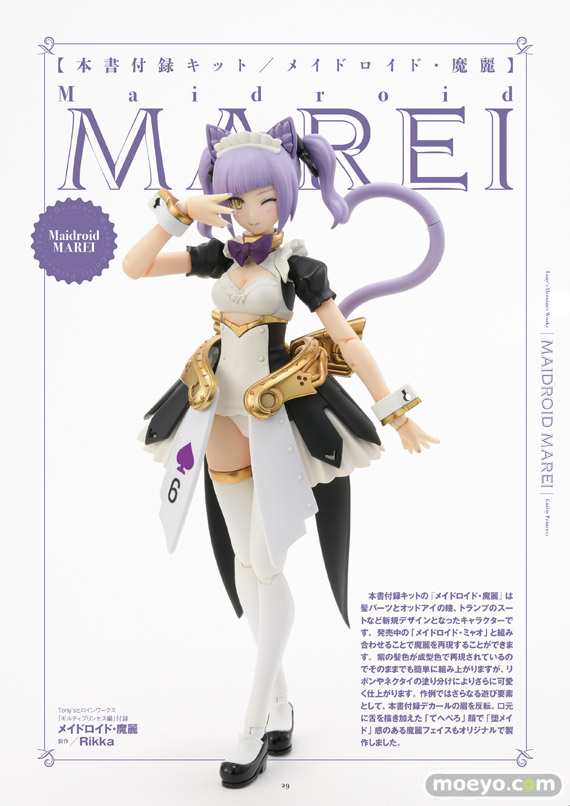 本誌限定「魔麗用髪型プラキットパーツ」「専用瞳・トランプデカール」が付属!既存のキットと合わせることで、新キャラクター「魔麗(まれい)」を再現することが可能となります。