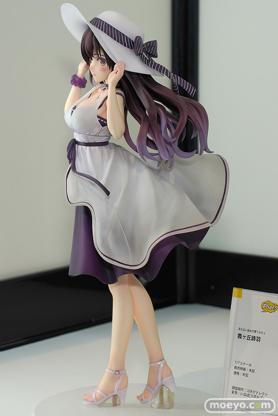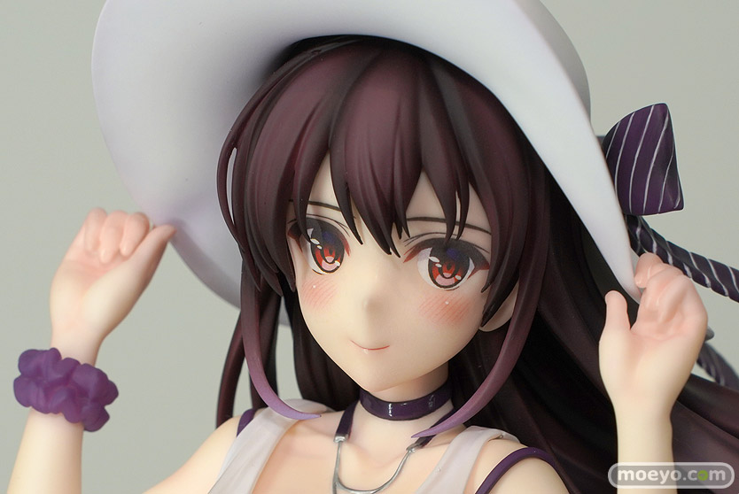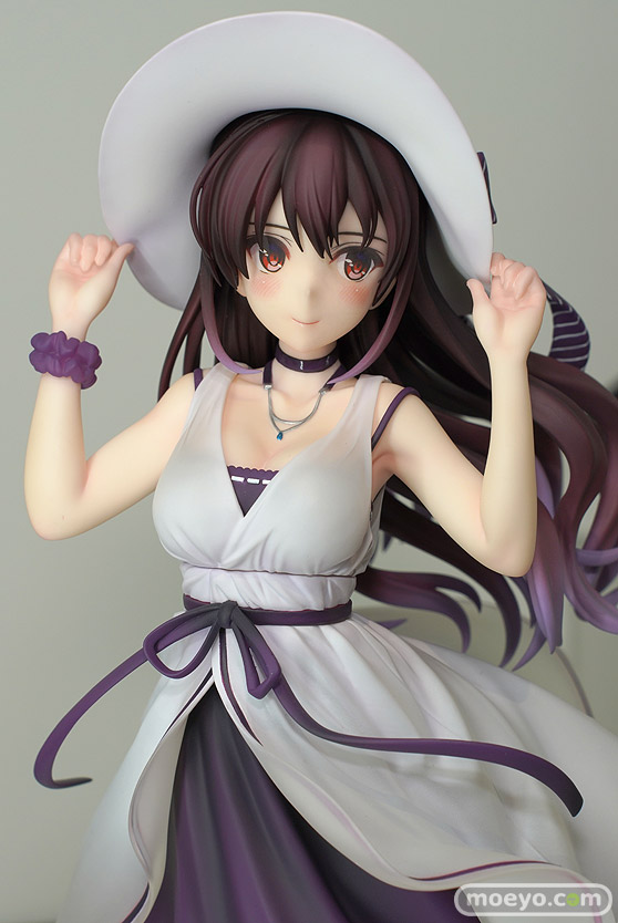 ファット・カンパニーの新作美少女フィギュア「冴えない彼女の育てかた♭ 霞ヶ丘詩羽」が予約受付開始!『TVアニメ『冴えない彼女の育てかた♭』より、主人公の先輩にして超人気ラノベ作家である「霞ヶ丘詩羽」が1/7スケールでフィギュア化です。白を基調としたワンピース姿で本来のドSな性格を感じさせない穏やかな微笑みを浮かべる姿で立体化しました。風にはためく流れを意識した髪やワンピースの裾の造形、深崎暮人氏の繊細なタッチや複雑な色の構成を意識した彩色も見どころとなっています。』というもので、原型制作はRico(コネクトレクト)さん。彩色はいなば(リボルブ)さん。制作協力はPhat!さん。「ワンホビ35」の会場で展示されていた彩色サンプルの様子を、画像レビューとしてお伝えします!