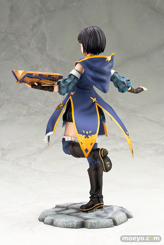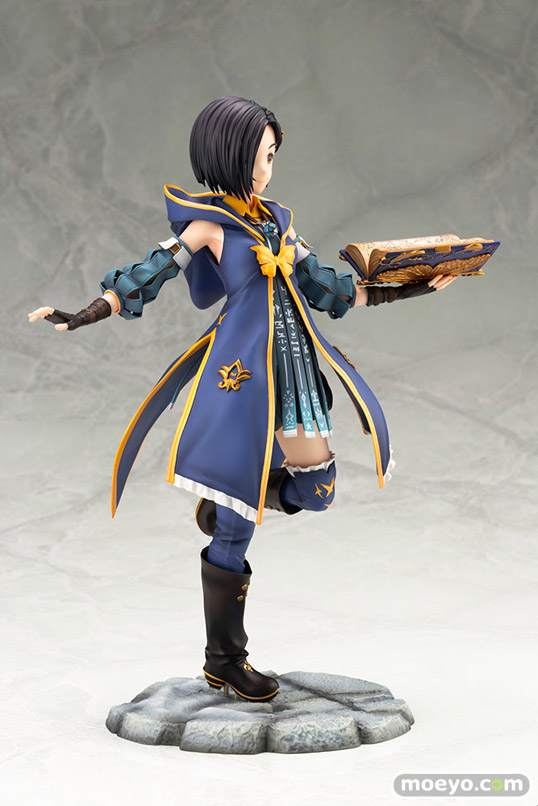 設定資料を基に丁寧に再現された特徴的なデザインの衣装や魔導書の造形にも注目。独特な形状のアームカバーや上着の後ろ側の裾に施された刺繍表現の細かな造形。