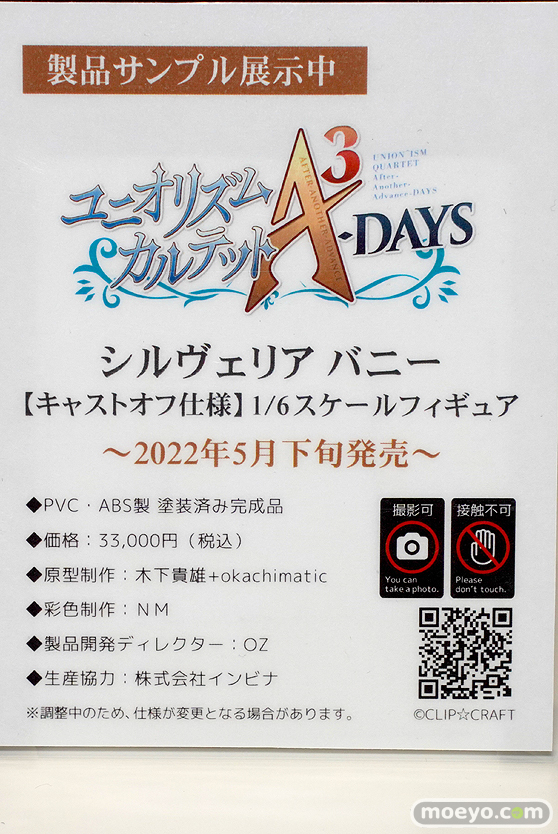 【東京フィギュア祭り2022春】【アダルトフィギュア】美巨乳全開!CLIP☆CRAFT新作エロフィギュア「ユニオリズム・カルテット シルヴェリア バニー」彩色サンプルが展示!2022年5月に発売予定のCLIP☆CRAFTの新作エロフィギュア「ユニオリズム・カルテット シルヴェリア バニー」の原型テストショット2とおっぱいぽろりな彩色サンプルが、「東京フィギュア祭り2022春」の会場で展示!『PCゲーム『ユニオリズム・カルテット』シリーズより、優雅な騎士「シルヴェリア」が1/6スケールフィギュアとして登場!ビジュアルファンブック用にデザインされたバニー姿のシルヴェリアの美麗な元イラストをモチーフにリニューアルデザイン!再現が難しい巻き髪など細部にまでこだわった魅力的な彼女に仕上げました!』というもので、衣装は着脱可能!原画は天坂隆志さん。原型師は木下貴雄+okachimaticさん。彩色制作はNMさん。生産協力は株式会社インビナさん。製品開発ディレクターはOZさん。その展示の様子を画像レビューとしてお伝えします!(アダルトフィギュアとなります!18歳未満の方は閲覧をお控えください。)