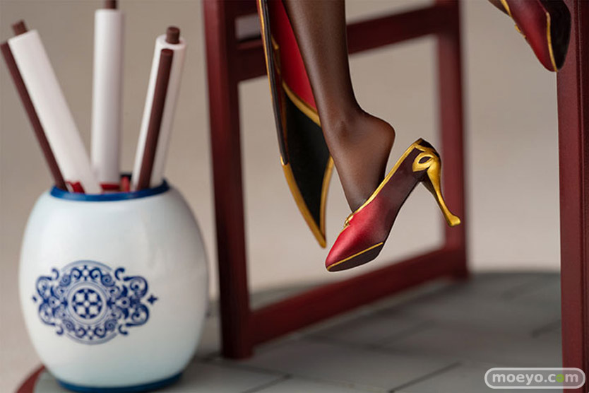 柔らかく微笑んだ表情や衣装デザインの上品さ、一方で、ゆったりした姿勢やつま先に引っ掛けた靴など、品の良い美しさとくつろいだ雰囲気が両立した仕上がりとなっています。
