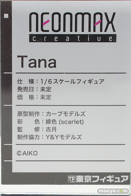 【東京フィギュア祭り2022春】ネオンマックス新作美少女フィギュア「Tana」監修中原型が展示!ネオンマックスの新作美少女フィギュア「Tana」の監修中原型が、「東京フィギュア祭り2022春」の会場で展示!イラストレーターのAIKOさんが描くオリキャラ「Tana」のチャイナ服姿のイラストを立体化したもので、原型制作はカーブモデルズさん。彩色は緋色(scarlet)さん。監修は古月さん。制作協力はY&Yモデルズさん。その展示の様子を画像レビューとしてお伝えします!
