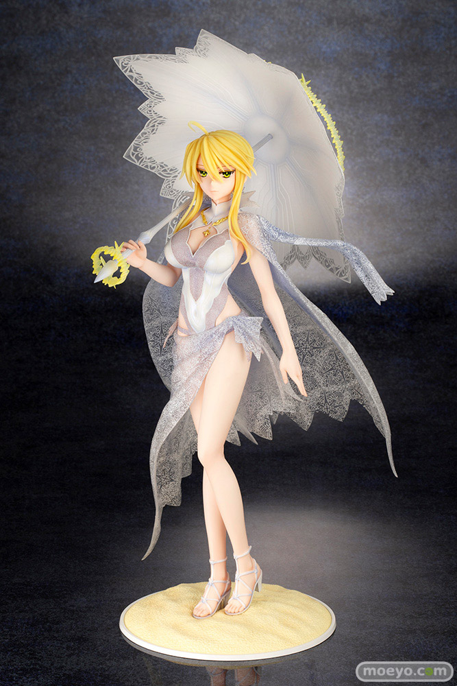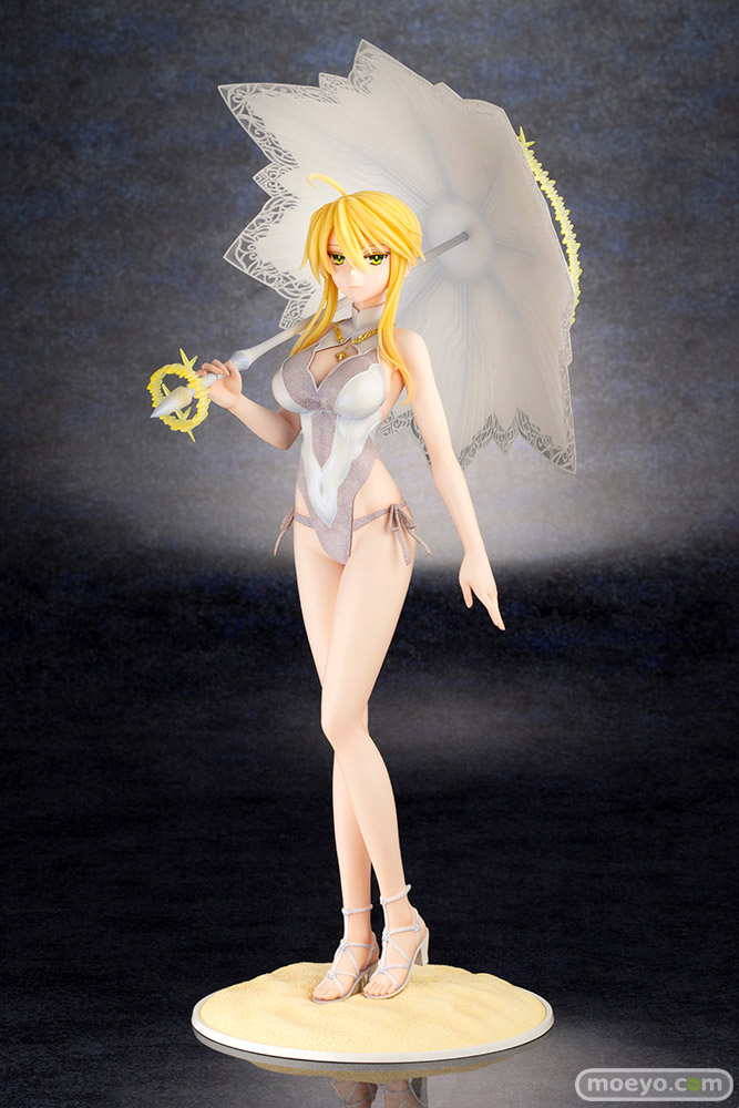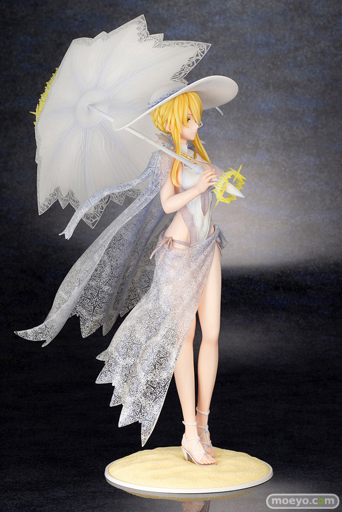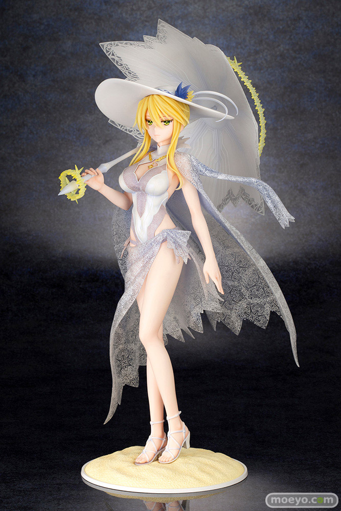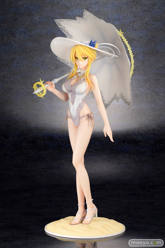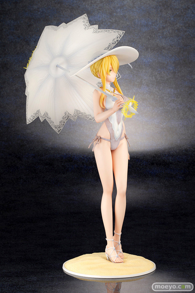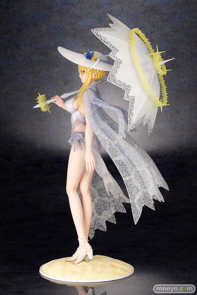 高貴な水着姿の第二再臨「ルーラー/アルトリア・ペンドラゴン」が登場!目を引く姿を変えたロンゴミニアド(傘)や各種光輪もしっかりと再現。