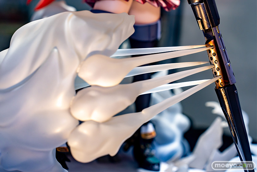 「昇進段階二」衣装は、スカートやベルトの金属部など、パーツ毎の素材の違いを造形と塗装でリアルさを追求。台座は「破城矛」より排出された噴煙の圧倒的なボリューム感を演出!