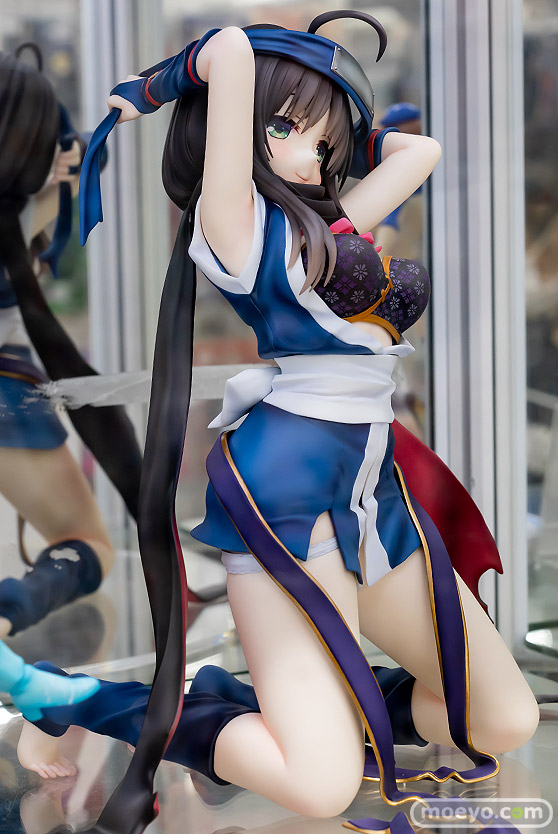 アリスグリントの新作美少女フィギュア「千恋*万花 常陸茉子」の彩色サンプルが、あみあみ 秋葉原ラジオ会館店で展示!『ゆずソフトがおくる大人気ゲーム『千恋*万花』より、巫女姫様の護衛として育てられた少女「常陸茉子」を1/3.5スケールの巨大フィギュアにしちゃいました!!巨大サイズである事を活かして、ずれてお尻に食い込んだパンツや美しいボディラインなどなど、しっかり再現しています。』というもので、原型制作はCKBさん。彩色はかわも(リボルブ)さん。その展示の様子を画像レビューとしてお伝えします!
