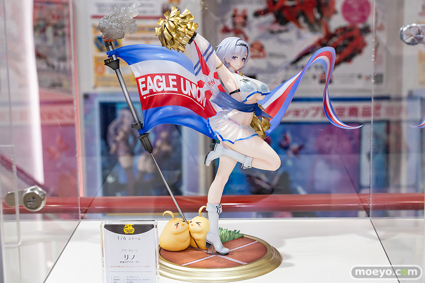 GOLDENHEAD(ゴールデンヘッド)の新作美少女フィギュア「アズールレーン リノ 波濤のチアリーダー」の彩色サンプルが、アキバのボークスホビー天国2で展示!『Yostarが贈る大人気アプリゲーム『アズールレーン』より、ユニオンKAN-SENの「リノ」が波濤のチアリーダーとして待望のフィギュア化です!大迫力のフラッグ、透き通るような美しい銀色の髪の毛、ドキッとしてしまうスケスケ衣装、一生懸命仲間たちを鼓舞する彼女の姿を完全再現いたしました。』というもので、原型制作はRico(コネクトレクト)さん、サウザンドさん。彩色は五日市歩さん。制作協力でアリスグリントさん。その展示の様子を画像レビューとしてお伝えします!