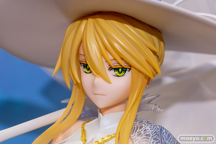 コトブキヤの新作美少女フィギュア「Fate/Grand Order ルーラー/アルトリア・ペンドラゴン」の、おそらくPVC製の彩色サンプルが、コトブキヤ秋葉原館で展示!『大人気スマートフォン専用ロールプレイングゲーム『Fate/Grand Order』より、高貴な水着姿の第二再臨「ルーラー/アルトリア・ペンドラゴン」が登場!目を引く姿を変えたロンゴミニアド(傘)や各種光輪もしっかりと再現。上着やパレオの美しい模様もぜひご注目ください。』というもので原型制作は白髭創さん、西丸芳弘さん。帽子、上着、パレオはそれぞれ着脱が可能です。その展示の様子を画像レビューとしてお伝えします!