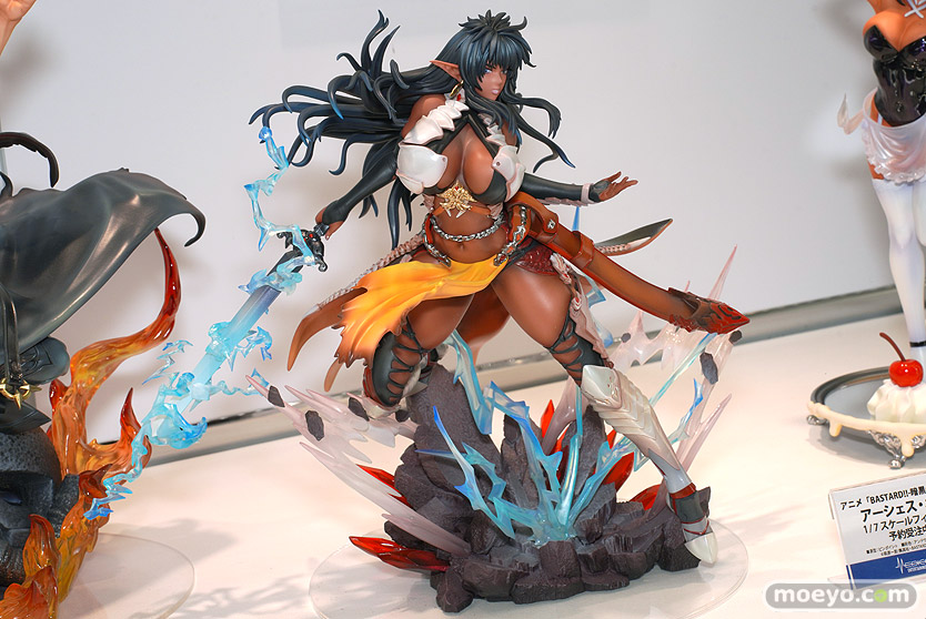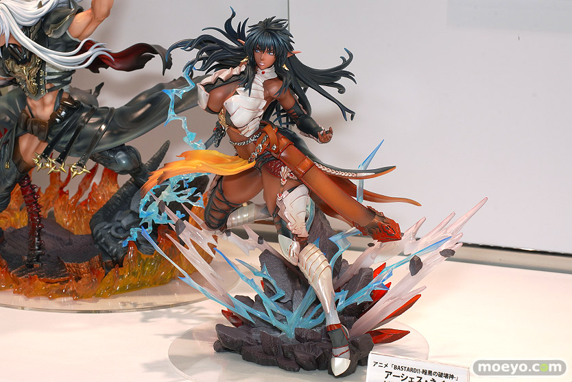メディコス・エンタテインメントの新作美少女フィギュア「BASTARD!! -暗黒の破壊神- アーシェス・ネイ」の彩色サンプルが、「あみあみホビーキャンプ2022秋」の会場で展示!『アニメ「BASTARD!! -暗黒の破壊神-」より、闇の反逆軍団四天王の一人、雷帝「アーシェス・ネイ」が堂々立体化!右手には雷を帯びた伝説の魔剣「雷神剣(ライトニング・ソード)」を携え、足元に広がるのは落雷に砕ける大地のエフェクト。凛とした表情で戦う勇ましくも美しい雰囲気を表現しました。』というもので、原型制作はピンポイントさん。彩色はアンドウケンジさん×ピンポイントさん。その展示の様子を画像レビューとしてお伝えします!