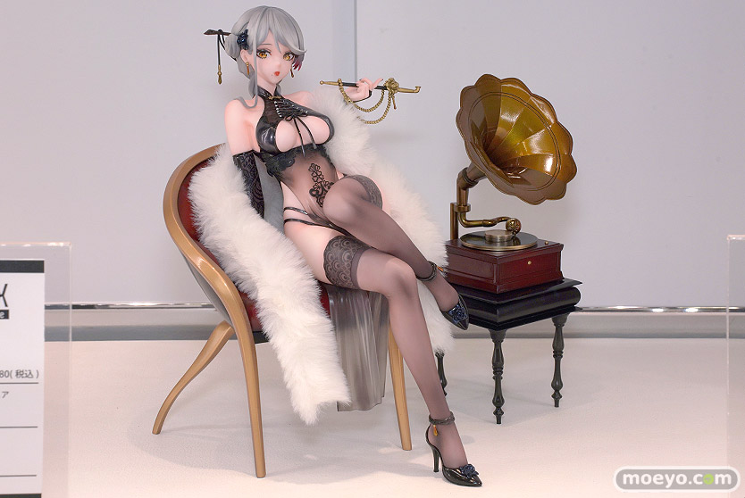 【AHC2022秋】ネオンマックス新作美少女フィギュア「靡煙」彩色サンプルが展示!ネオンマックスの新作美少女フィギュア「靡煙」の彩色サンプルが、「あみあみホビーキャンプ2022秋」の会場で展示!『コスプレ衣装デザイナーのazazel1944(罐儿(かん))様の衣装を元に、チーズパン様によるイラスト【靡煙】を立体化しました!衣装の刺繍やレースのディテールはもちろん再現し、キセルや足首などの細かい装飾も美しく仕上げました!優雅さをより高める舞台装置としての蓄音機も必見です!』というもので、イラストはチーズパンさん。原型制作はYSDさん。衣装デザインはazazel1944(罐儿)さん。彩色は緋色(scarlet)さん。社内監修は古月さん。その展示の様子を画像レビューとしてお伝えします!