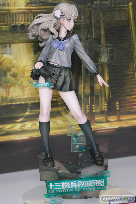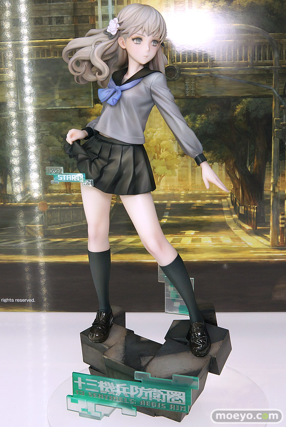 アルターの新作美少女フィギュア「十三機兵防衛圏 冬坂五百里」が予約受付開始!『ドラマチックアドベンチャーゲーム『十三機兵防衛圏』より“冬坂五百里”を機兵起動時の姿で立体化。可憐な容姿に決然とした表情とポーズが映える、ドラマ性に満ちた仕上がりです。ゲーム本編グラフィックのイメージを巧みに再現した、柔らかく情感あふれる造形と彩色が見どころ。右太腿に現れた起動マーカーのエフェクトや作品タイトル部分はクリアーパーツを使用し、効果的なアクセントとなっています。』というもので、原型制作は稲垣洋さん。彩色は鉄森七方さん。「メガホビEXPO2022 NEW DOT」で展示されていた彩色サンプル展示の様子を画像レビューとしてお伝えします!