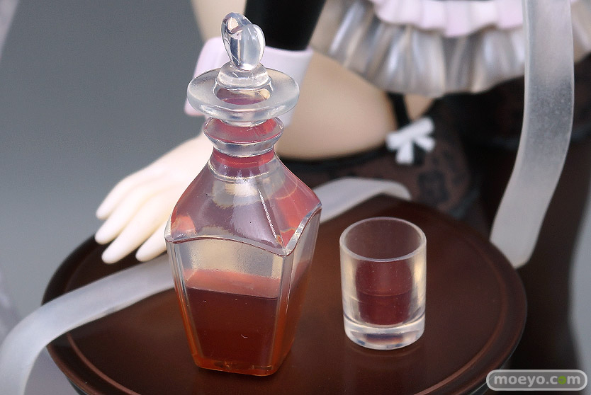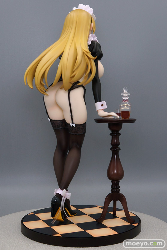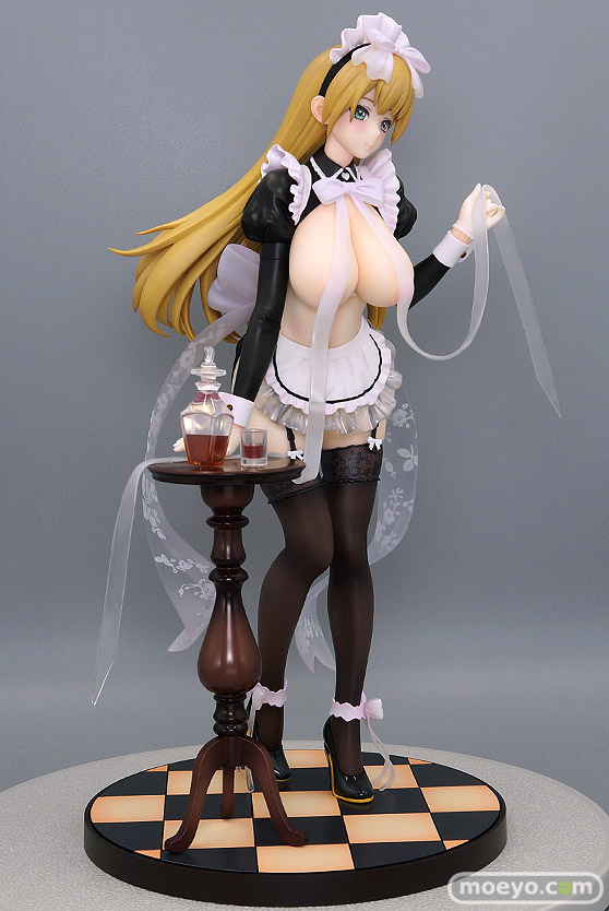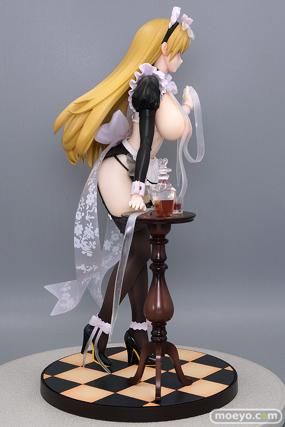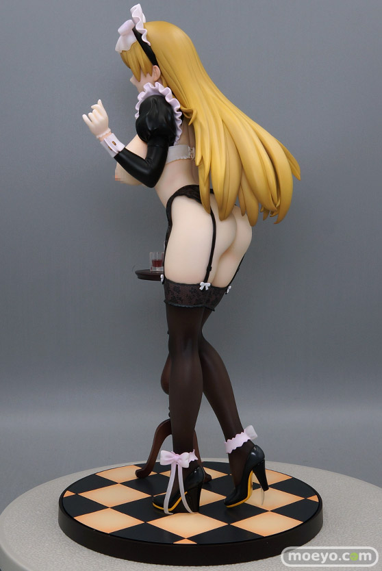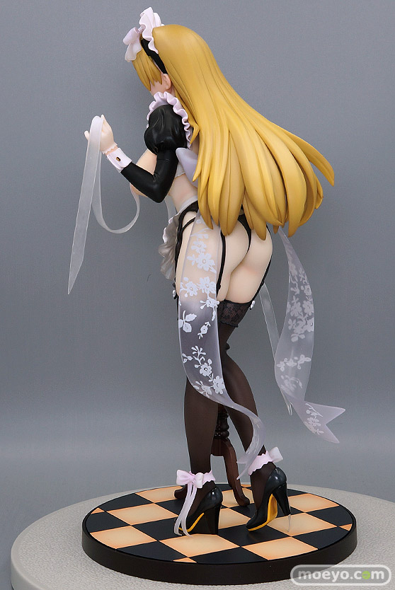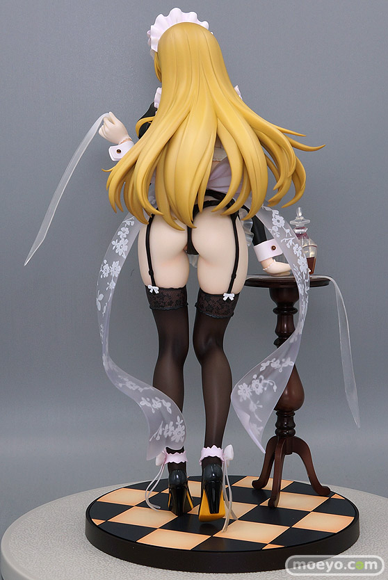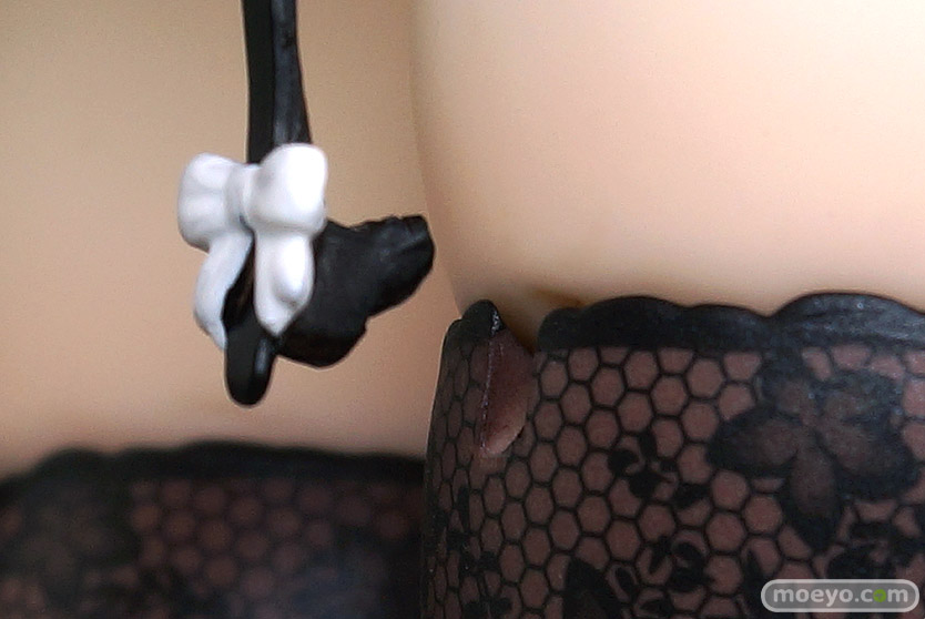 胸元を飾る半透明のリボンパーツや、すらりとした脚を包むストッキング、魅惑的なガーターベルトなど、キュートながらもセクシーな魅力があふれるスタイルとなっています。