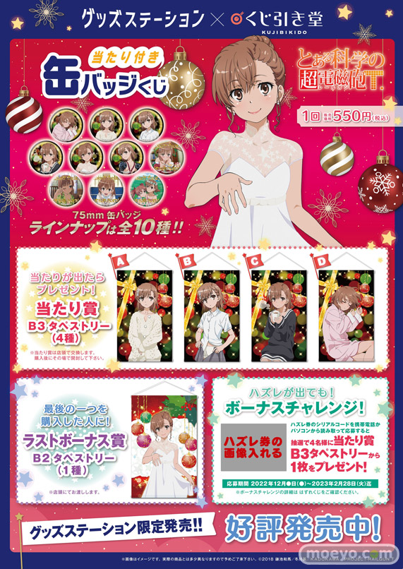 株式会社KADOKAWAは、 TVアニメ『とある科学の超電磁砲T』より、過去に「くじ引き堂」で展開された描きおろしイラストを使用した『とある科学の超電磁砲T』当たり付き缶バッジくじを、グッズステーションにて限定販売します。【KADOKAWA】