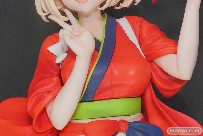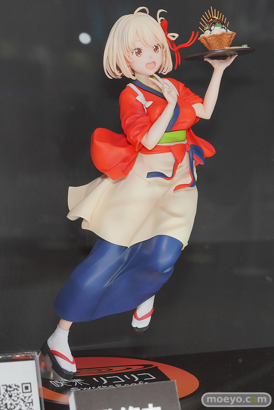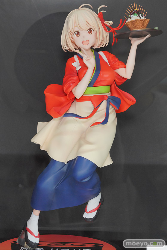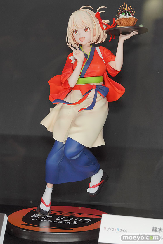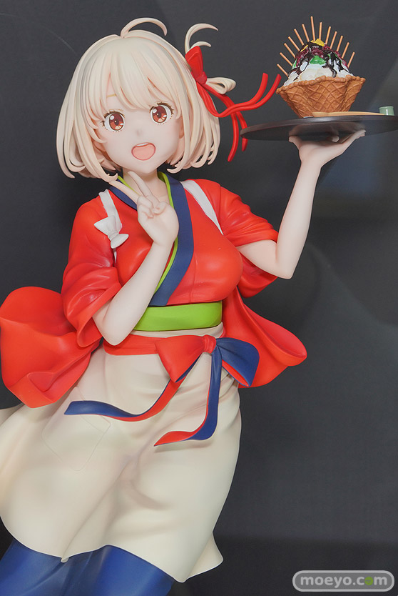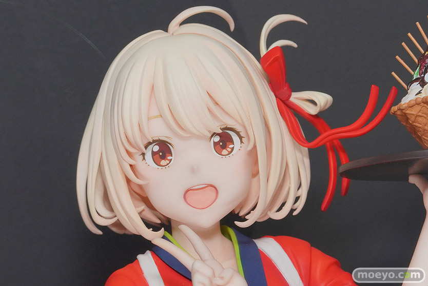 本日2022年12月30日(金)より予約受付開始した、アニプレックスの新作美少女フィギュア「TVアニメ「リコリス・リコイル」錦木千束」の彩色サンプルが、2022年12月30日~31日開催の「コミックマーケット101」の会場で展示!『第一弾キービジュアルのポーズをもとに、丁寧に立体化しました。「喫茶リコリコ」の制服に身を包み、こちらまで元気にしてくれるような千束らしい明るい笑顔が魅力的!ふわりとした袖やなびくリボンなど細部までしっかりと表現されており、軽やかで躍動感のあるポージングとなっています。さらに、見事に再現された「錦木千束スペシャルエレガントパフェ」にもぜひご注目ください!』というもので、原型制作はRico(コネクトレクト)さん。彩色は佐倉(ふくふく)さん。その展示の様子を画像レビューとしてお伝えします!