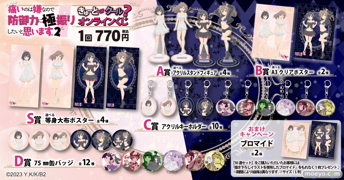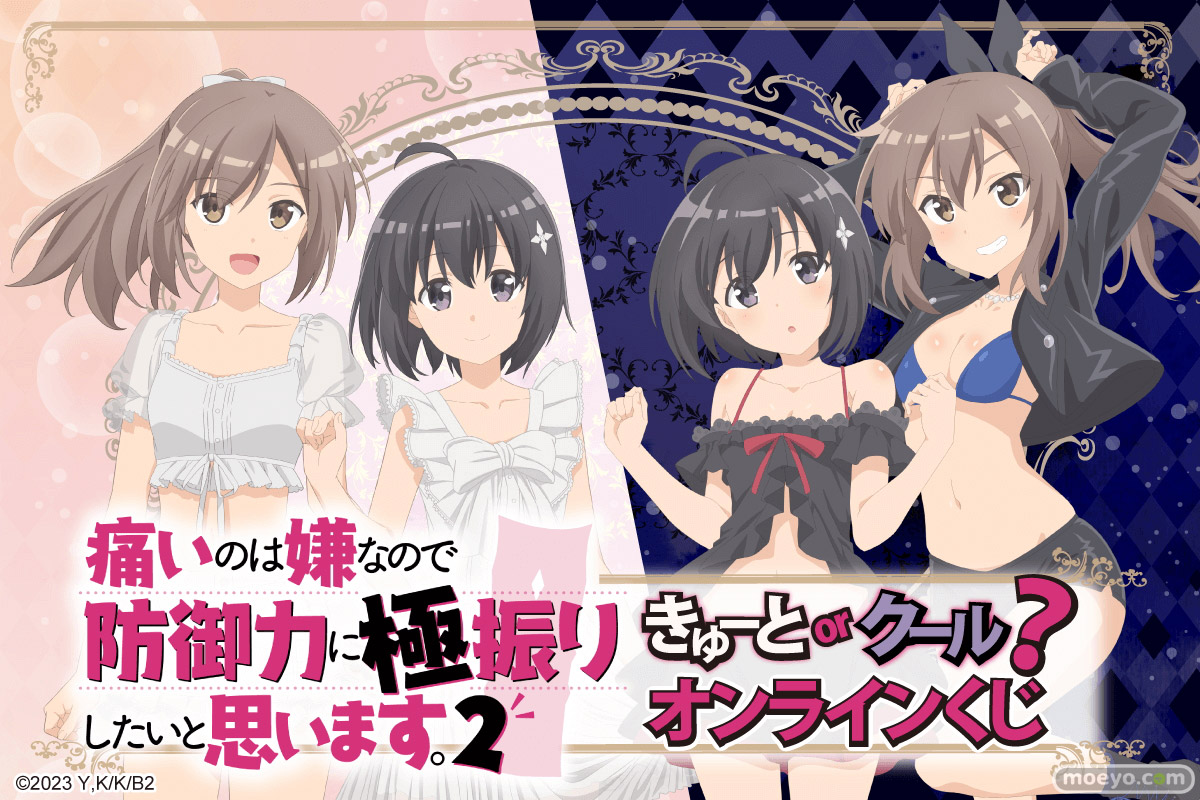 株式会社KADOKAWAは、運営するオンラインくじサービス「くじ引き堂」において、 TVアニメ『痛いのは嫌なので防御力に極振りしたいと思います。 2』オリジナル商品が手に入る「痛いのは嫌なので防御力に極振りしたいと思います。 2 きゅーと or クール? オンラインくじ」を、 2023年1月17日(火)12時より販売します。【KADOKAWA】
