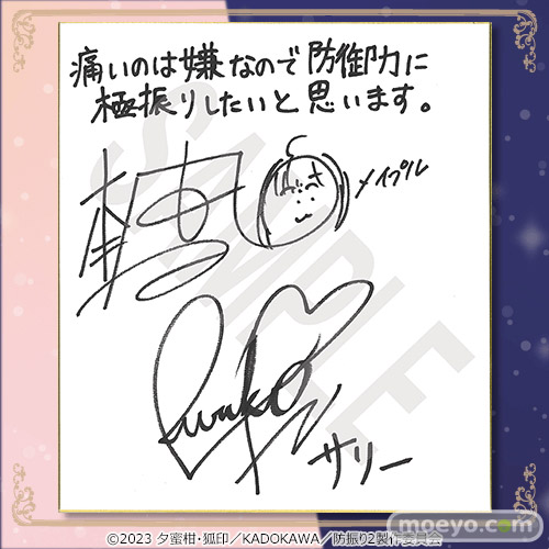 商品はメイプルとサリーの新規描き下ろしイラストを含むオリジナルグッズとなります。二人の「きゅーと or クール?」をテーマに描いた描き下ろしイラストの商品など豪華景品が盛りだくさん!! また期間中に“リツイートキャンペーン”として、くじ引き堂のTwitter公式アカウントをフォロー&リツイートすると、抽選で3名様に「メイプル役の本渡楓さん、サリー役の野口瑠璃子さん寄せ書き直筆サイン色紙」をプレゼント!! この機会をお見逃しなく!!