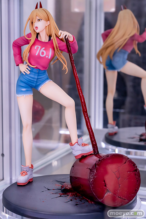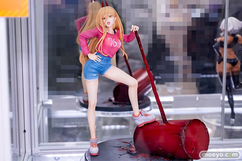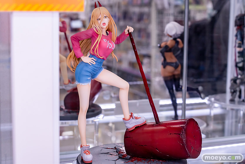 あみあみ×AMAKUNIの新作美少女フィギュア「チェンソーマン パワー」の彩色サンプルが、あみあみ 秋葉原ラジオ会館店で展示!『アニメ「チェンソーマン」より、初めて早川アキの家に訪れた時の私服姿で「血の魔人」パワーを立体化!表情やポージングに、パワーらしい尊大で傲慢な雰囲気と見た目の美少女らしさをたっぷりと詰め込みました。流れるような髪の毛や印象的なギザギザの歯も丁寧に造形し、スケールフィギュアだから再現できる情報量を追求。Tシャツの襟元からチラリと覗くインナーやデニムのダメージ感、スニーカーのステッチやレザーの素材感なども多様な塗り分けで再現しました。』というもので、原型制作は毒島孝牧(ブスジマックス)さん。彩色は月柳さん。製造はAMAKUNIさん。その展示の様子を、画像レビューとしてお伝えします!