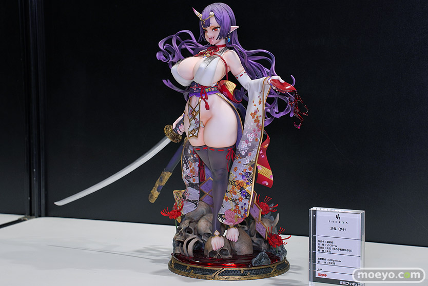 新規ブランド「インビナ」の第一弾となる新作エロフィギュア「羅刹姫 – 沙鬼 -」が予約受付開始!『朝凪先生と、原型制作LESLyzerosix様の天才強力タッグで最高にエロかっこいいフィギュアになりました!!限定版は、高級感あふれるアクリルプレートベース付属。刀は一部差し替えによる抜刀状態も再現可能で、もちろんこちらも衣装は、差し替えによりもちろん着、脱が選択可能です。すべての?部分に朝凪先生のこだわりが!!』というもので、原型制作は前述の通りLESLyzerosixさん。彩色は明智逸鶴(大正堂)さん。制作協力で朝凪さん。「ワンダーフェスティバル2022 [夏]」の会場で展示されていた彩色サンプルの様子を、画像レビューとしてお伝えします!