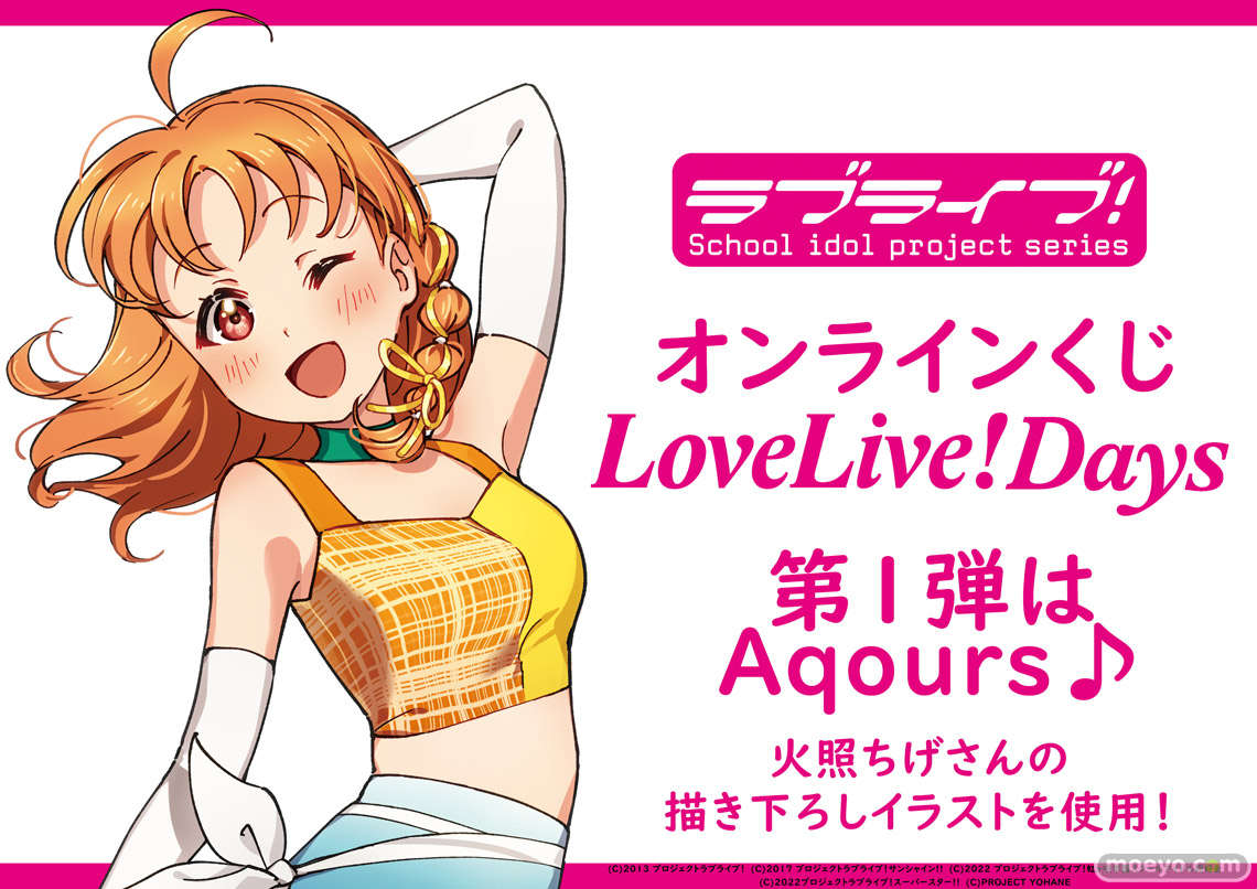 2023年2月販売予定の『ラブライブ!サンシャイン!!』を皮切りに、TVアニメ3期が決定した『ラブライブ!スーパースター!!』、2023年夏には新作エピソードOVAの制作&劇場版公開が決定している『ラブライブ!虹ヶ咲学園スクールアイドル同好会』、さらにシリーズの原点である『ラブライブ!』を「くじびき堂」にて展開。さらに2023年にアニメ化が決定している『ラブライブ!サンシャイン!!』のスピンオフ『幻日のヨハネ -SUNSHINE in the MIRROR-』が早くもオンラインくじに登場!
