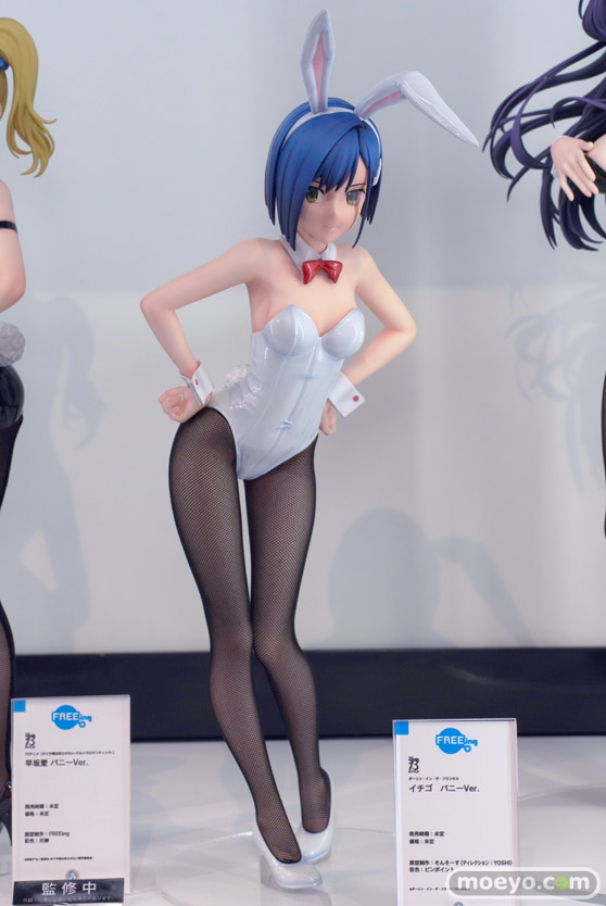 フリーイングの新作美少女フィギュア「B-style ダーリン・イン・ザ・フランキス イチゴ バニーVer.」が、GOODSMILE ONLINE SHOP(同dアニメストア店)、Amazon、あみあみの限定販売アイテムとして予約受付開始!『アニメ「ダーリン・イン・ザ・フランキス」より、「CODE:015」こと「イチゴ」が、1/4スケールのバニーコスチュームで登場です。真面目な優等生タイプの「イチゴ」が、まさかのバニースーツ姿に!青いショートカットに、純白のコスチュームが映える仕上がりとなっております。もちろん網タイツは布製、大スケールならではの見どころも満載です。』というもので、原型制作はそんそーすさん(デュレクション:YOSHIさん)。彩色は月柳さん。「ワンホビギャラリー 2022 AUTUMN」の会場で展示されていた彩色サンプルの様子を、画像レビューとしてお伝えします!