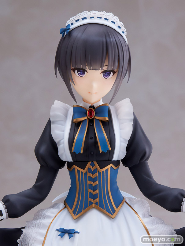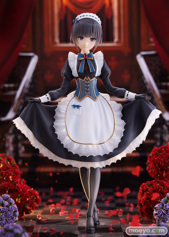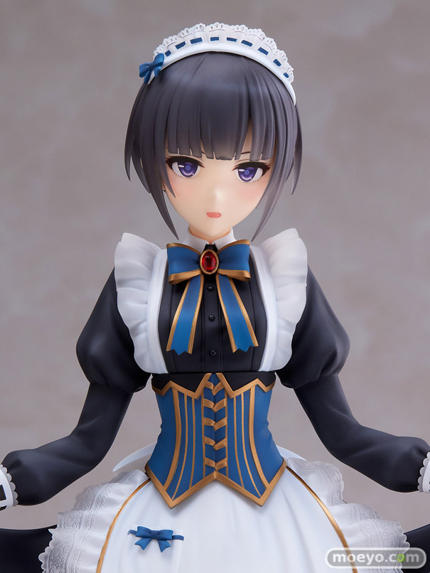 ウェーブの新作美少女フィギュア「アイドルマスター シンデレラガールズ 白雪千夜+」が予約受付開始!『星の光でいっぱいの新たなステージ、開幕――「アイドルマスター シンデレラガールズ」より、白雪千夜が1/7スケール完成品フィギュアで登場!お嬢さまに付き従う千夜を、慎ましやかな美しいカーテシー姿で立体化しました。髪型やフリルはクリアー成型で軽やかに、カチューシャ・エプロンの彫刻ディテールやコルセットなど衣装は細やかな造形と彩りで質感たっぷりに再現。表情はキュッと結んだ口元が愛らしく、少し怒っている?表情も付属しますので、本当は感情豊かな彼女の魅力を是非見つけてみてください!』というもので、原型制作は千鶴(鶴の館)さん。彩色はまいもっち(鶴の館)さん。そのサンプルの様子を画像レビューとしてお伝えします!