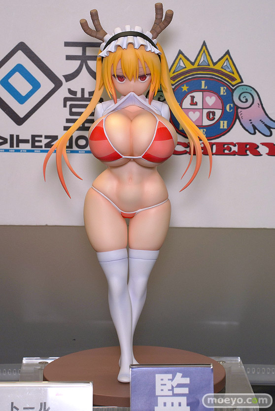 回天堂の新作美少女フィギュア「小林さんちのメイドラゴン トール」が予約受付開始!『回天堂より『小林さんちのメイドラゴン』フィギュア第一弾!クール教信者先生がTwitter投稿された水着イラストを元に原作版「トール」フィギュア化決定です!1/6スケール(全高約29cm)の大きさと、ムチッとした質感を感じさせる肉体美の造形にこだわりました。普段、小林さんにはむけない蔑むような視線にゾクゾクドキドキ!』というもので、原型制作はみんへる(ブロンドパロット)さん。彩色はnishiさん。「2023春 ホビーメーカー合同展示会」の会場で展示されていた彩色サンプルの様子を公式のサンプル画像も合わせ、画像レビューとしてお伝えします!