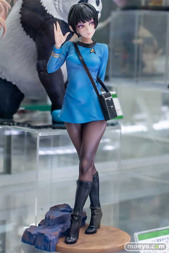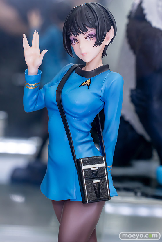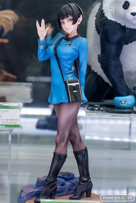 コトブキヤの新作美少女フィギュア「スター・トレック美少女 ヴァルカン サイエンスオフィサー」の彩色サンプルが、あみあみ 秋葉原ラジオ会館店で展示!『イラストレーター山下しゅんや氏の手により、尖った耳、釣りあがる眉、切り揃えられた髪型など基本に忠実でありつつも新たな味付けを追加。誰もが一度は試したことのある?ファンにはお馴染みのハンドサイン”ヴァルカン・サリュート”を決めたポージングでフィギュア化。』というもので、原型制作Ke(小抹香)さん。その展示の様子を画像レビューとしてお伝えします!