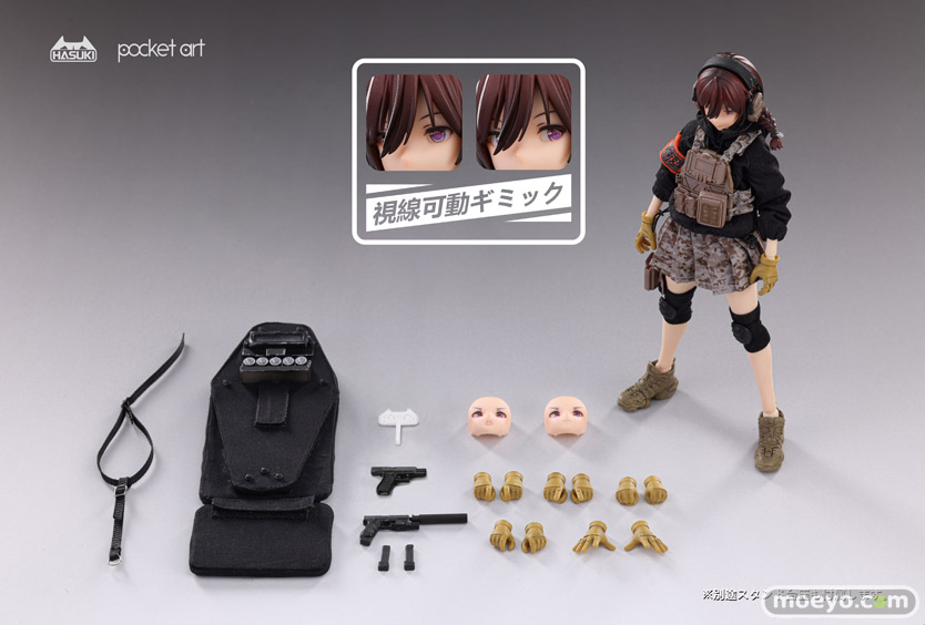 HASUKIの新作美少女アクションフィギュア「pocket artシリーズ PA004 ガーディアン 卯月怜」が予約受付開始!付け替えフェイスパーツ×3、付け替えハンドパーツ×6セット、G17拳銃×1(サイレンサー×1・X300戦術懐中電灯×1・マガジン×3付き)、G17拳銃(ブローバック)×1、VANT-VM重装シールド×1などが付属!そのサンプルの様子を、画像レビューとしてお伝えします!