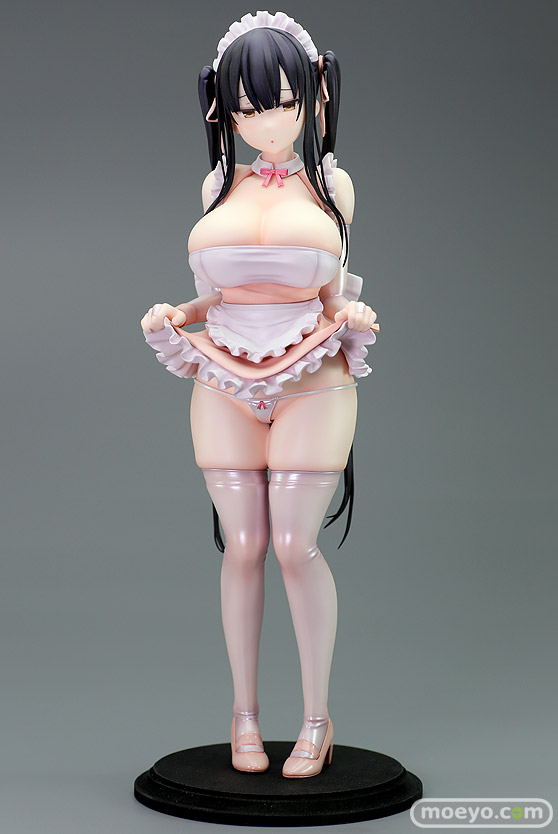 FROGの新作美少女フィギュア「清楚彼女、堕ちる。Ⅱ 月見 千冬」が予約受付開始!『ぐれもす氏大人気シリーズ「清楚彼女、堕ちる。Ⅱ」より「月見千冬」が1/5スケールで立体化!無理やり着せられたメイド服をたくし上げて困惑する千冬の姿を、全高33cmを超えるビックサイズでお贈りいたします。』というもので、原型制作はマッカラン24さん。彩色制作はマイキーさん。そのサンプルの様子を、画像レビューとしてお伝えします!(アダルトフィギュアとなります!18歳未満の方は閲覧をお控えください。)