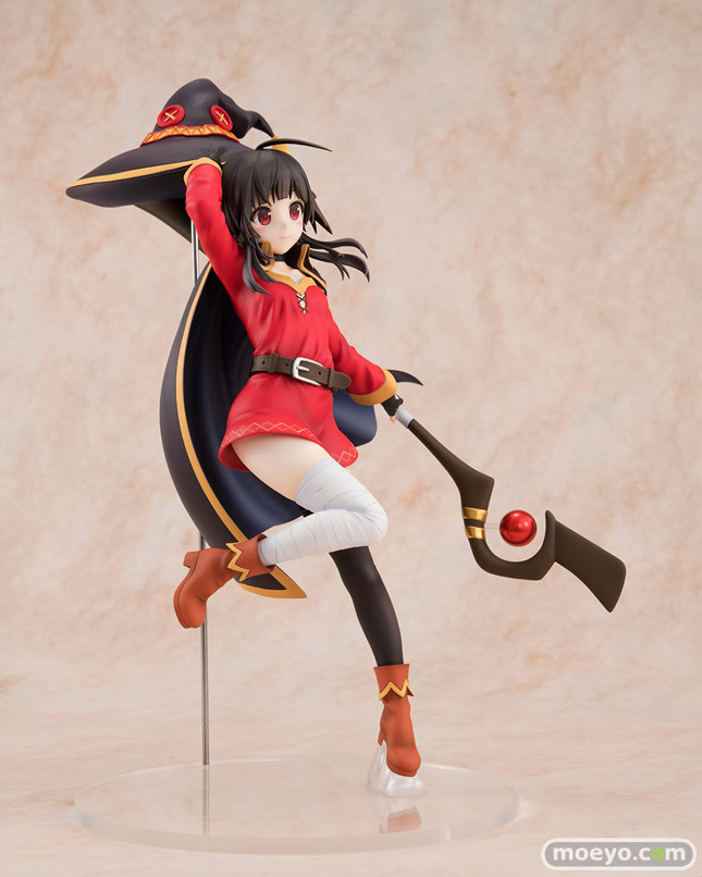また、ヒロインの一人「めぐみん」も1/7スケールでフィギュア化。2017年に発売された『三嶋くろね画集 Cheers! この素晴らしい世界に祝福を!』より、天使のような微笑みが眩しい「めぐみん」のイラストを元に立体化しました。衣装のフィット感を絶妙なシワと起伏で見事に再現しています。あどけない仕草と愛くるしい彼女の表情を是非手にとってご覧ください。