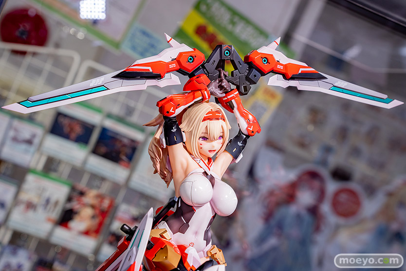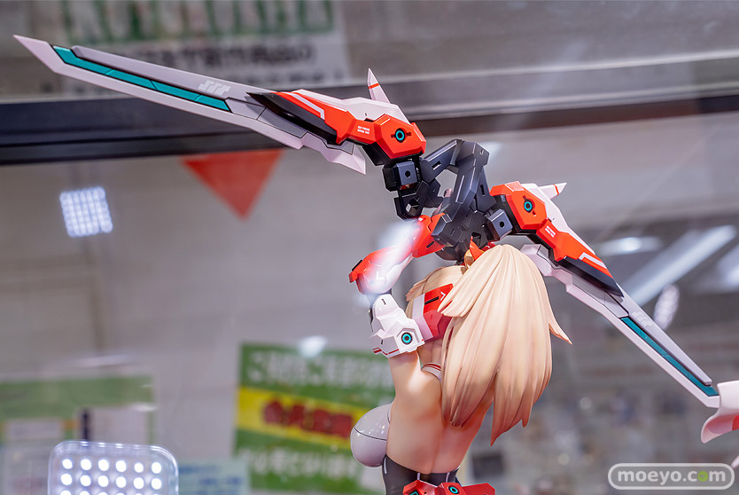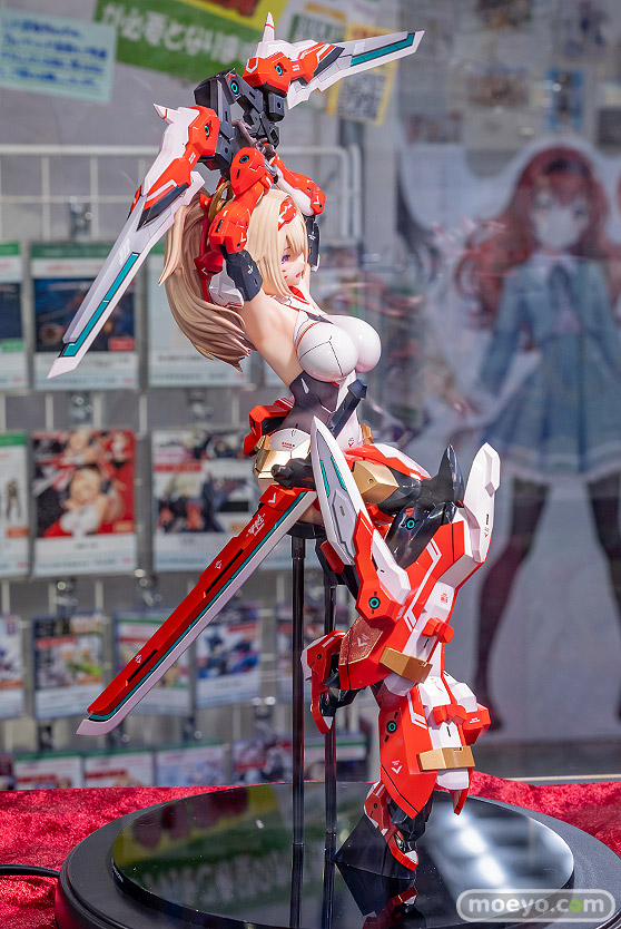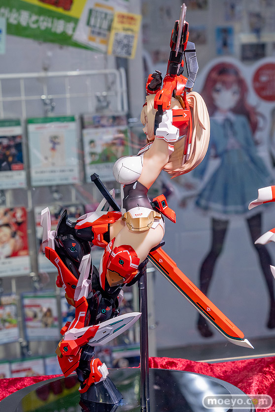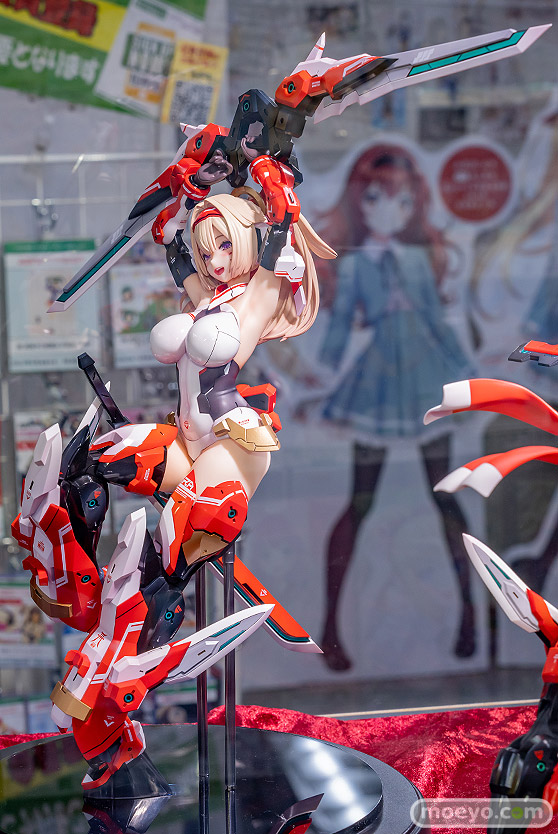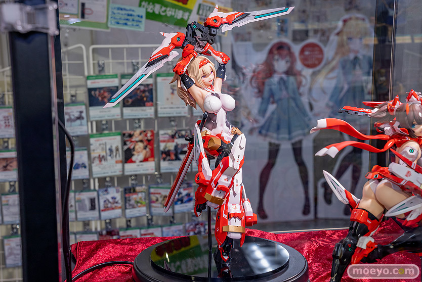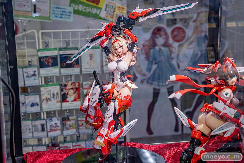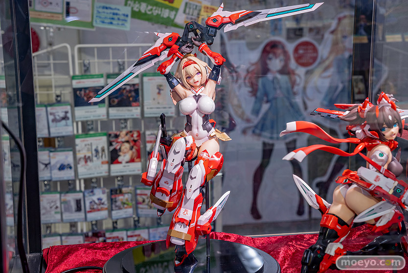 コトブキヤの新作美少女フィギュア「メガミデバイス 朱羅 弓兵」の、おそらく製品版同等と思われるPVC製の彩色サンプルが、コトブキヤ秋葉原館で展示!『プラモデルシリーズの「メガミデバイス」より Nidy-2D-氏がデザインした「朱羅 弓兵」が 圧倒的存在感の2/1スケールフィギュアで堂々の立体化!!1/1プラモデルの約2倍の身長、体積にして約8倍の特大スケールフィギュアで、 朱羅のデザイナーであるNidy-2D-氏自らの手によって同シリーズ「朱羅 忍者」フィギュアと同様に数々のセルフアップデートが盛り込まれました。』というもので、原型制作はBRAINさん。製作協力はコトブキヤさん。その展示の様子を画像レビューとしてお伝えします!