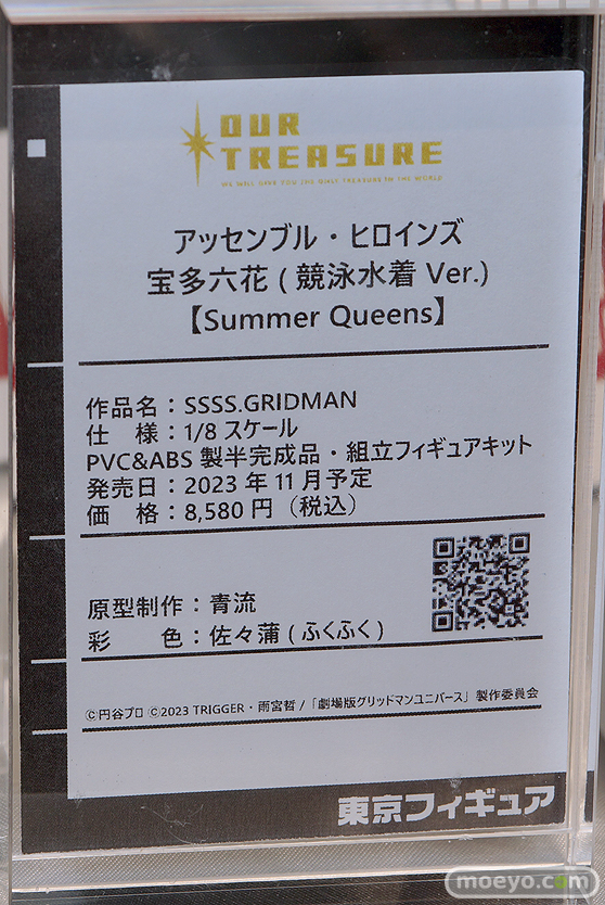 「Tokyo Figure Salon 2023 Spring」展示されていた新作フィギュア・グッズ フォトレポート032023年5月6日(土)~7日(日)の期間、秋葉原UDX4階 UDXギャラリーNEXT2で開催中の東京フィギュアの新作フィギュア展示イベント「Tokyo Figure Salon 2023 Spring」で展示されていた新作フィギュア展示の様子を、3回に分けてフォトレポートとしてお伝えします!こちらでは画像のアワートレジャー「SSSS.GRIDMAN 宝多六花(競泳水着Ver.)[Summer Queens]」や「アリス・ギア・アイリス アッセンブル・ヒロインズ 兼志谷シタラ[Summer Queens]」「ファイブスター物語 エンゲージ SR3 後期型」など展示の様子を。