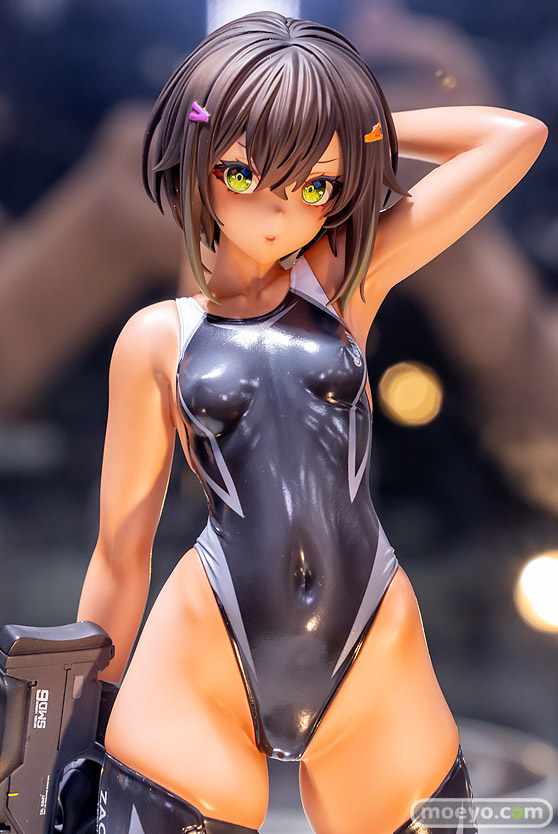 ホビージャパンの新作美少女フィギュア「ARMS NOTE 水泳部の部長ちゃん」の彩色サンプルが、あみあみ 秋葉原ラジオ会館店で展示!『深井涼介が展開する『ARMS NOTE』よりコウハイちゃんに続いて「水泳部の部長ちゃん」がAMAKUNIより登場!部活終わりの一瞬をイメージし立体化。小柄ながらも鍛えられた美しい肢体や健康的なボディラインを意識し丁寧に造形。目を引く競泳水着だけでなく武器、グローブといった『ARMS NOTE』水泳部らしさの部分も細かく再現。』というもので、原型制作はi-con(藍色空色)さん、銃器製作はにゃばーさん。彩色見本製作は五日市歩さん。製造はAMAKUNIさん。その展示の様子を画像レビューとしてお伝えします!