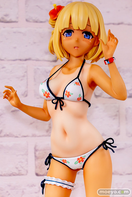 Q-six野新作エロフィギュア「まいてつ 雛衣ポーレット ビキニver. 日焼けあと」の、展示時期的におそらく製品版とほぼ同等と思われるPVC製の彩色サンプルが、あみあみ 秋葉原ラジオ会館店とボークスホビー天国2で展示!『Loseの大人気ゲーム『まいてつ』より「雛衣ポーレット」が日焼け肌でフィギュア化!まぶしい笑顔と健康的なボディはそのまま、華やかな花柄のビキニの下にはくっきりとしたスクール水着の日焼けあとがのぞく、通常版よりちょっとセクシーな仕上がりです!もちろん差し替え用照れ顔表情パーツも付属の豪華仕様!』というもので、原型制作はエスディスタ(Q-six)さん。彩色見本製作はK2(GILLGILL)さん。その展示の様子を画像レビューとしてお伝えします!(アダルトフィギュアとなります!18歳未満の方は閲覧をお控えください。)